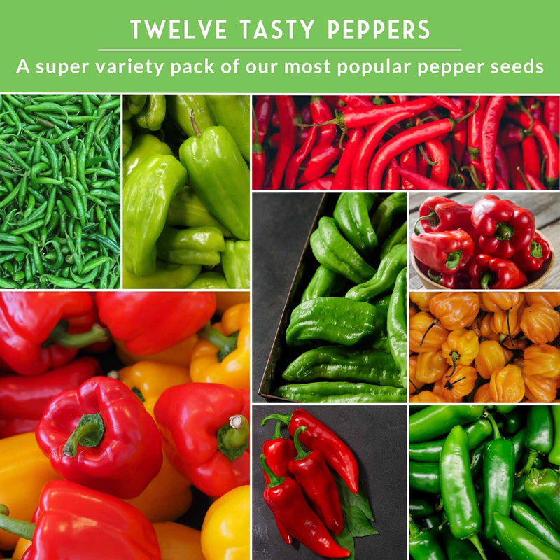 Grow a colorful, flavorful garden with the 12 Pepper Seed Pack from Survival Garden Seeds. This expanded collection combines heirloom hot and sweet pepper varieties, giving gardeners a complete mix for cooking, preserving, and fresh eating. From fiery chilies to mild, crisp bells, this set is designed to bring heat, sweetness, and versatility to your garden and kitchen.