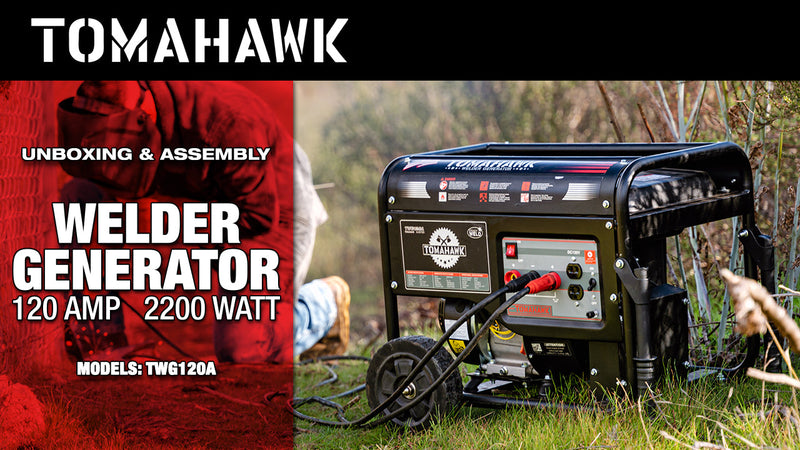The Tomahawk TWG120A Welder Generator is designed for high power and durability. Ideal for farms, workshops, or any job that requires electrical power and CC (constant current) stick welding. Producing up to 120 Amps of DC output with a 60% duty cycle, it is suitable for welding from 6010 rods up to 6013 rods. Convenient back wheels allow for maneuverability for portable onsite welding and can also be used for emergency back-up power when necessary. Featuring Tomahawk’s incredible 7HP engine, with 2200 watts of DC output, this welder generator will provide you with the power you need wherever you need it. The Tomahawk TWG120A is an excellent tool for job applications at your workshop, ranch, or farm - and is backed by a 1-year engine warranty.