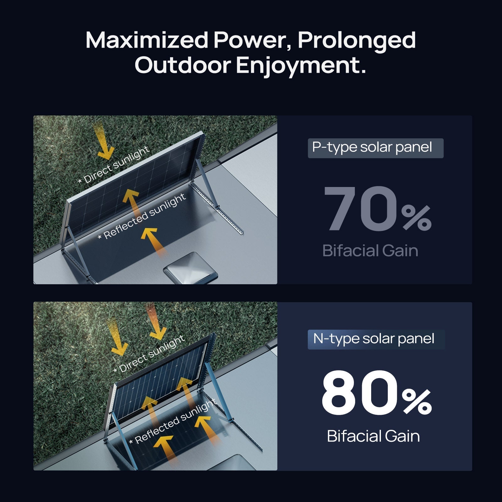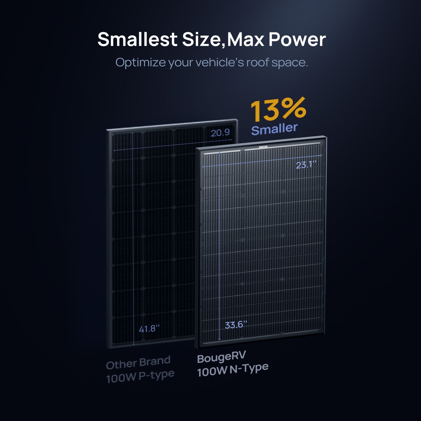 Discover cutting-edge solar technology with BougeRV's 400-watt 16BB solar panel. Engineered with premium N-Type TOPCon cells, it guarantees superior efficiency and durability. Perfect for 12V~24V photovoltaic systems, it's versatile for multiple applications. Whether you're outfitting an RV, yacht, or home, embrace solar energy excellence with BougeRV.