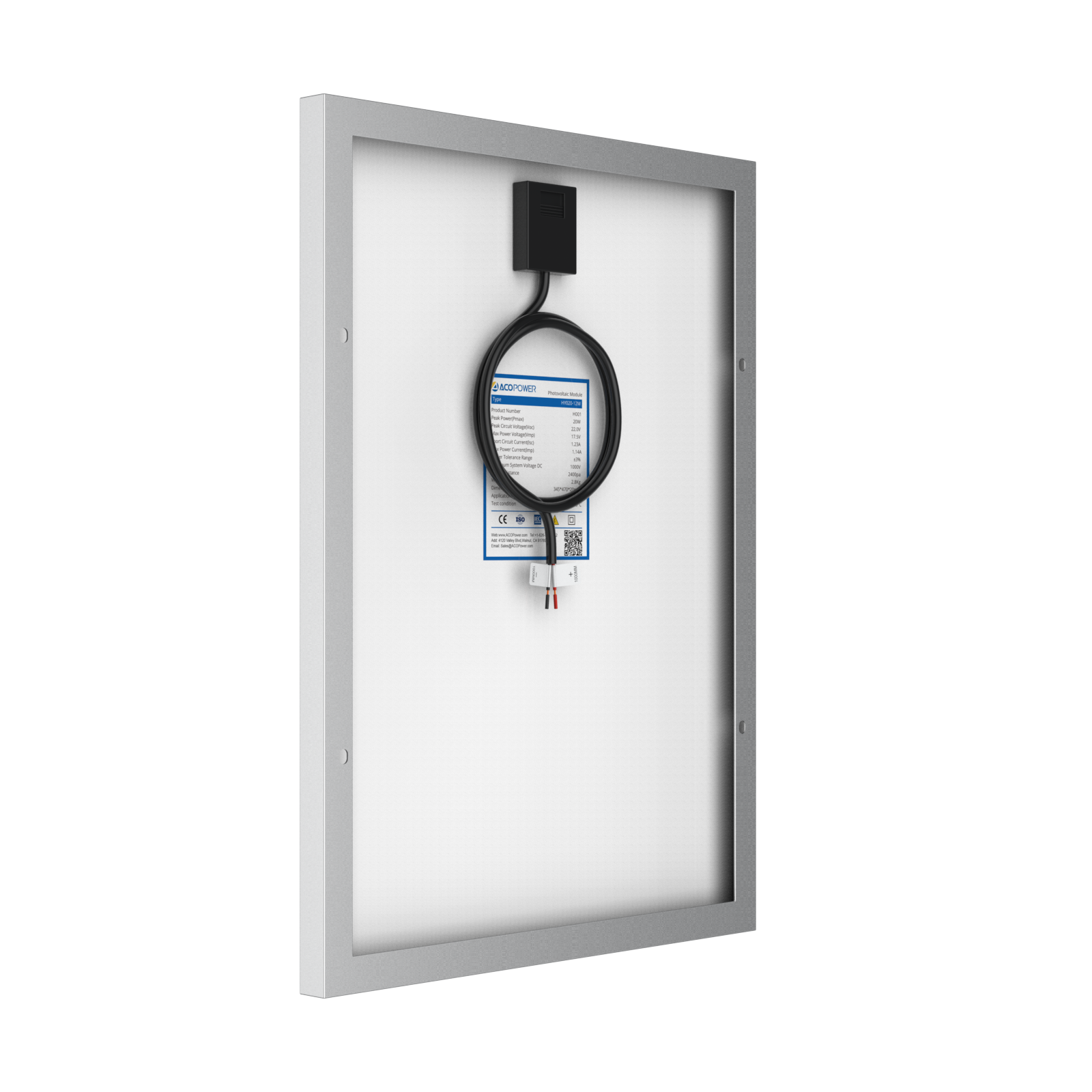 - High Efficiency – 20W A+ monocrystalline for 12V systems.