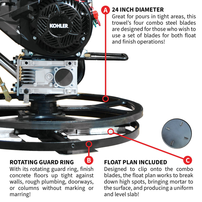 24" Concrete Power Trowel Edger 6HP Kohler Float Pan Blade Screed Finishing Tool (SC)