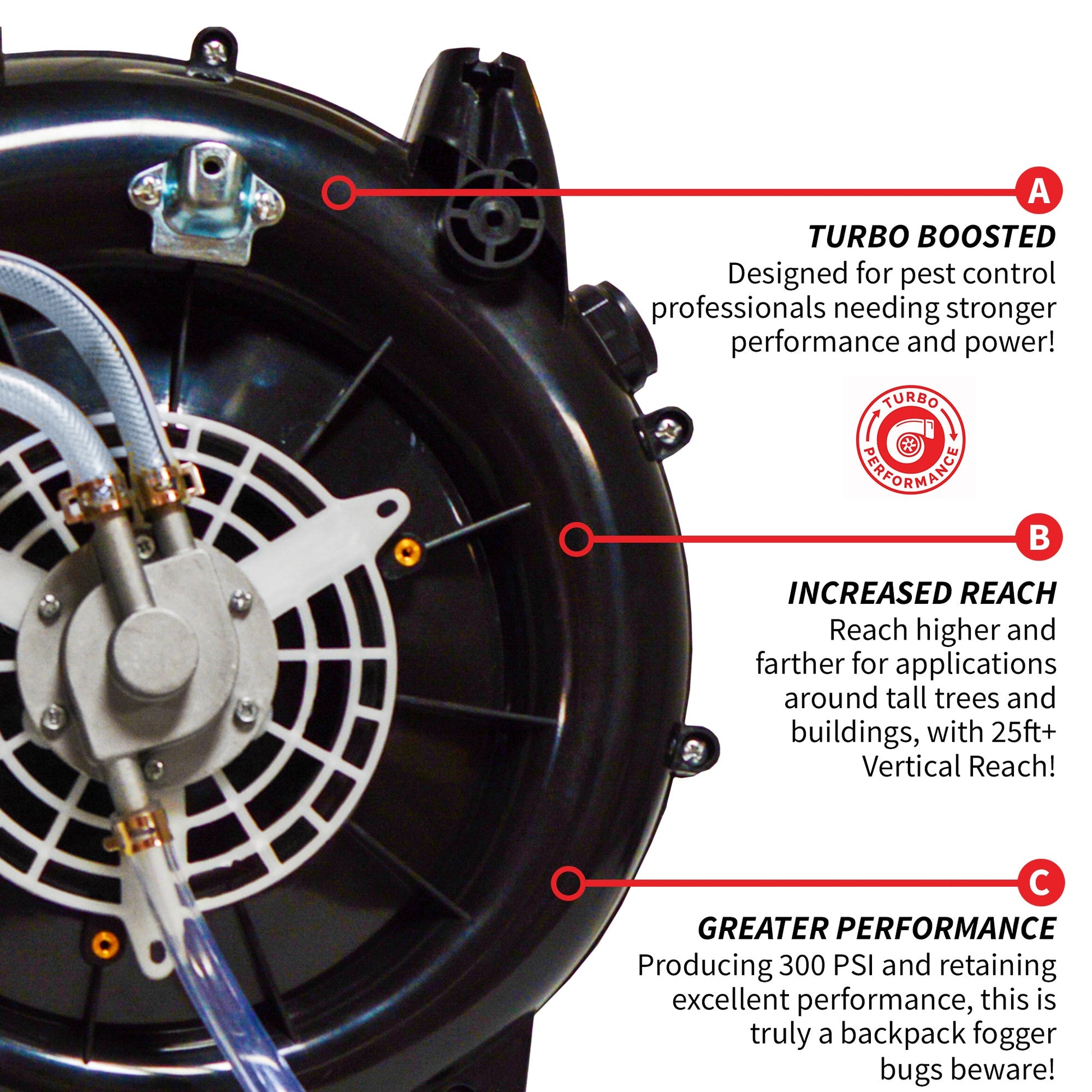 [TURBO BOOSTED POWER] 3.7 gallon backpack fogger, perfect for liquid pest control treatments, plus an great ULV sprayer of disinfectant sanitizers for viruses and germs