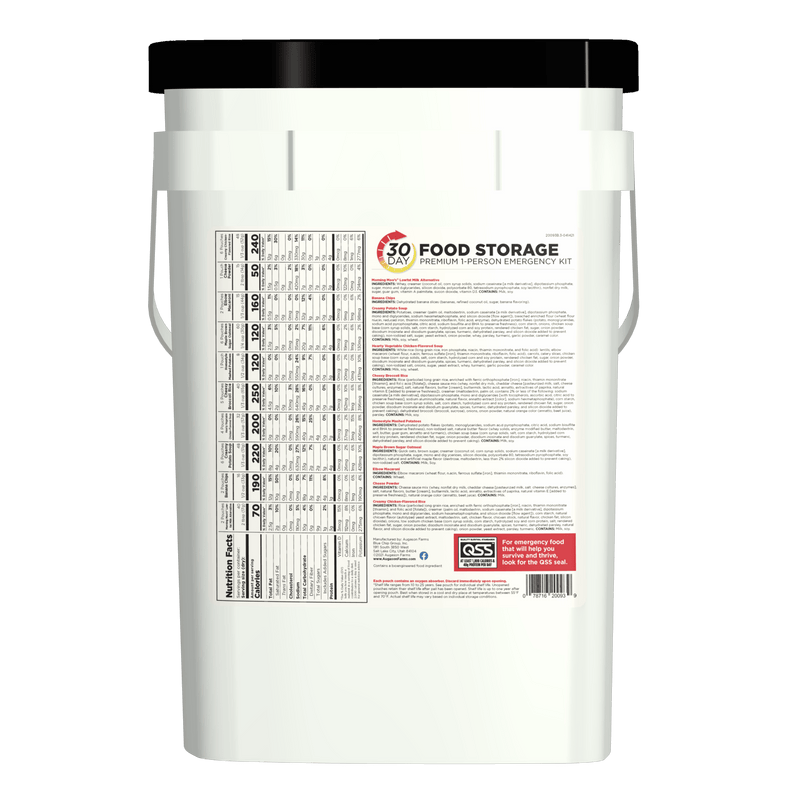Rest assured that you will be well-nourished when you find yourself in an emergency with Augason Farms 3-Month Emergency Food Supply. You will enjoy great-tasting meals that are packed with flavor, satisfying, and filling. This kit contains three of our best-selling 30-Day 1-Person Emergency Food supply pails, providing roughly 1,854 calories a day and a shelf life of up to 25 years.