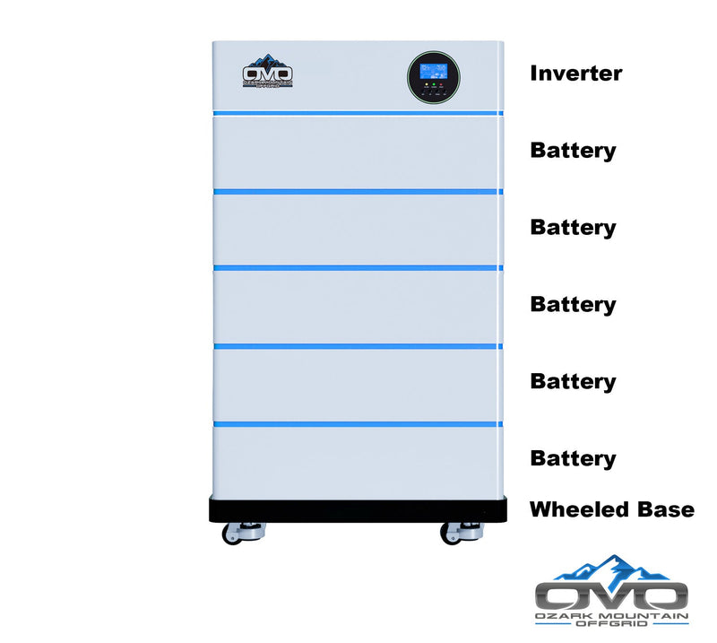 5.5KW OMO All-In-One Customizable Stacking Inverter/Battery System 5500W Inverter + 25.6K Lithium Battery + 5.5KW Solar Roof Mount (SC)