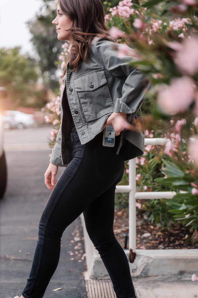 Thinner than a wallet. The slim packaging design was created so it can easily stow away in a pocket or your travel bag. In addition, it is LEAK PROOF. This is not your mother's hand sanitizer bottle!