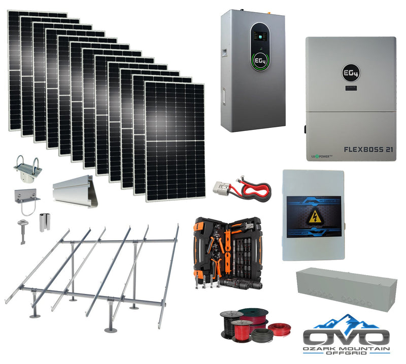 6.6KW Complete Offgrid Solar Kit + EG4 FlexBOSS21 Inverter + 14.3KW 48V EG4 Lithium Indoor Wall Battery + 6.6KW Solar with Ground Mount and Wiring