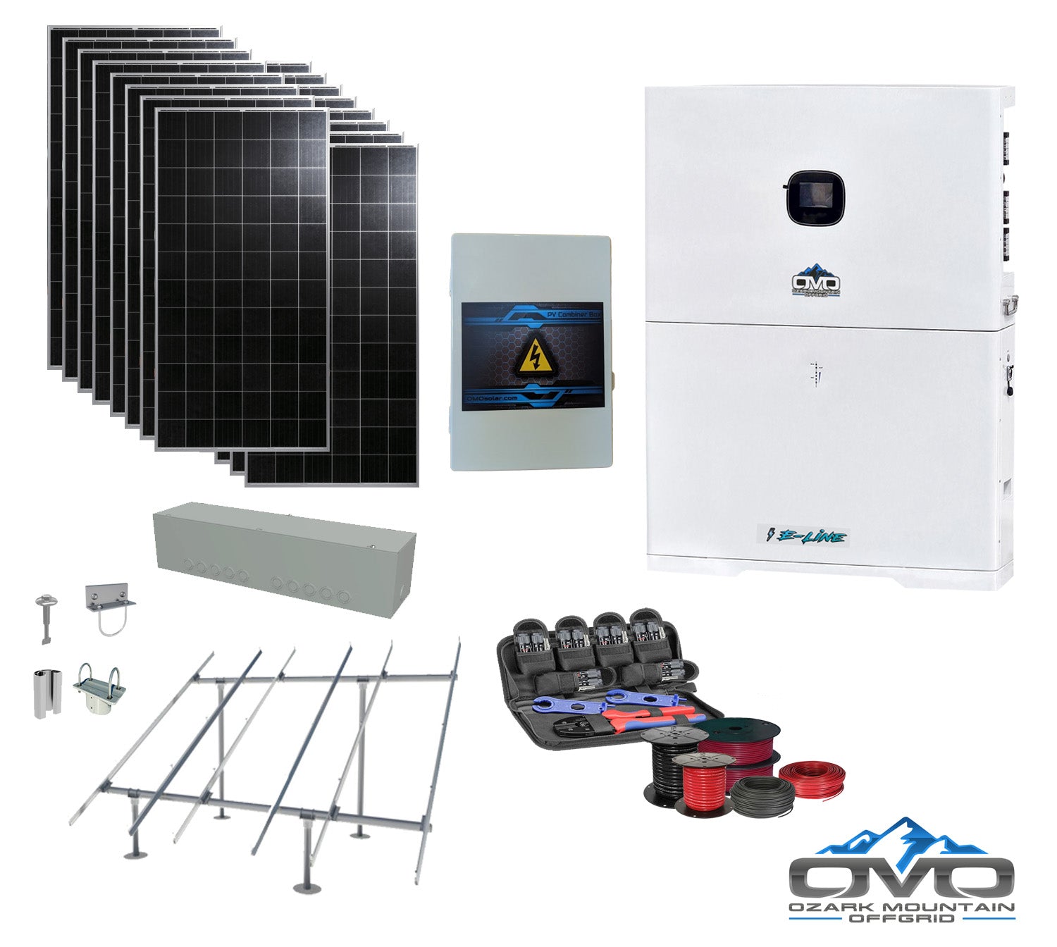 Offgrid Solar Kit - 10K OMO E-Line 120V/240V Inverter + 10.24KW OMO E-Line Lithium Battery + 6080 Watts Solar + Ground Mount and Wiring