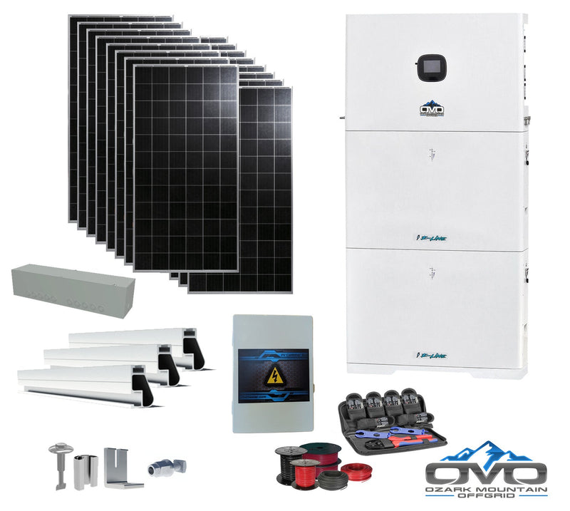 Offgrid Solar Kit - 10K OMO E-Line 120V/240V Inverter + 2x 10.24KW OMO E-Line Lithium Battery + 6080 Watts Solar + Roof Mount and Wiring