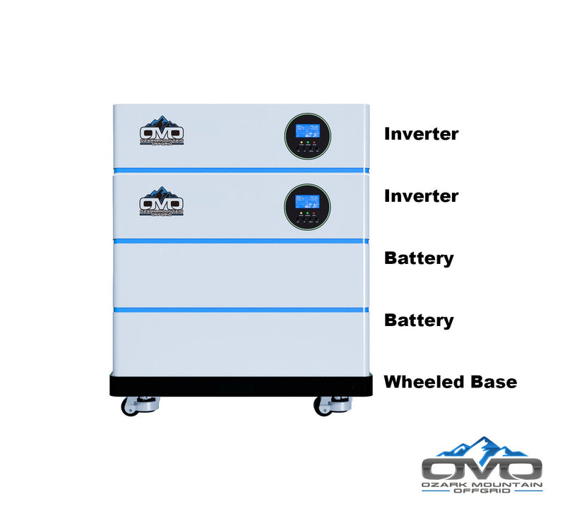 6KW OMO All-In-One Customizable Stacking Inverter/Battery System 120/240 11000W Total Inverter Output + 10.24K Lithium Battery + 6.6KW Solar Roof Mount (SC)