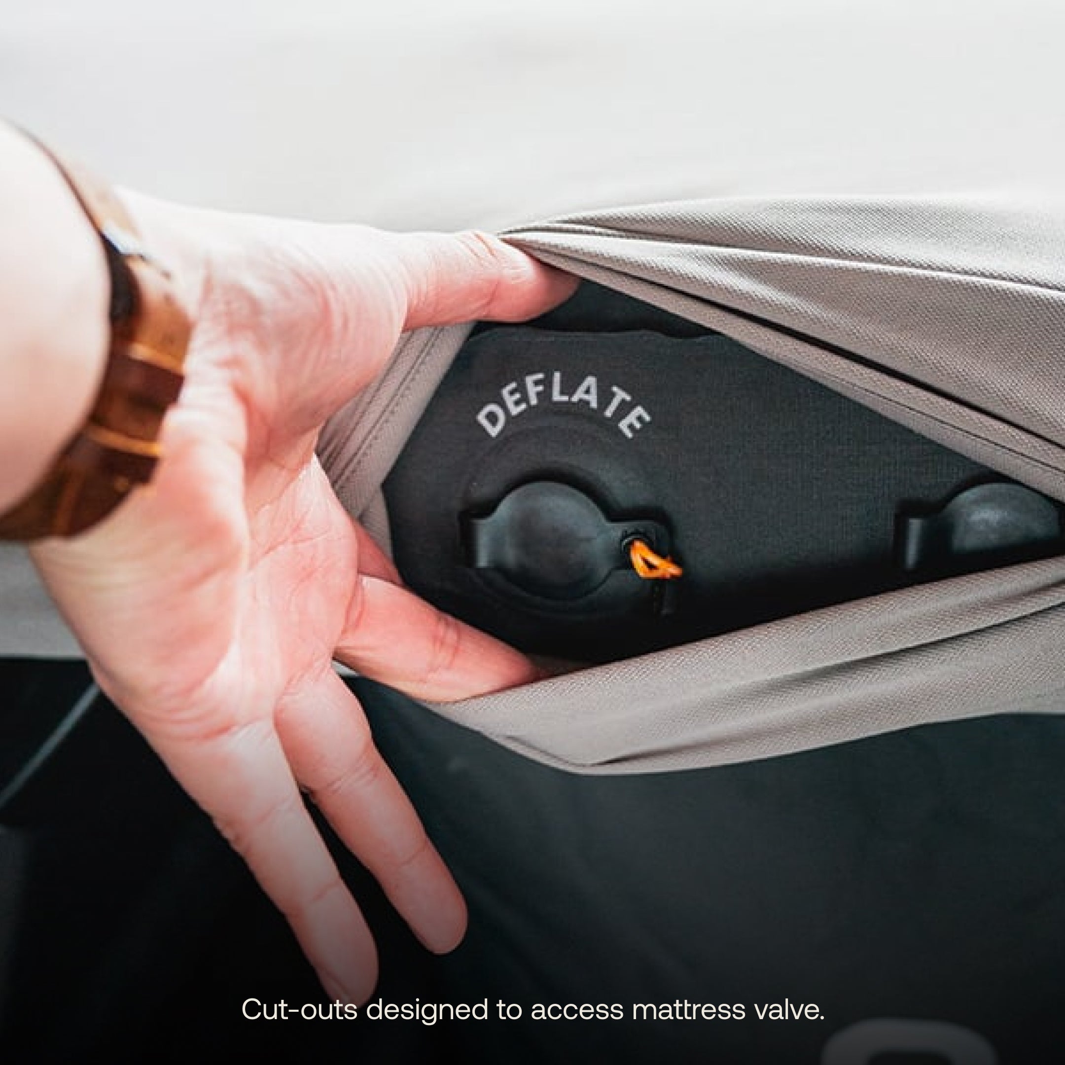 The Fitted Mattress Sheet adds a layer of comfort and protection to any Luno Air Mattress. The fabric is cozy, breathable, and offers temperature-regulated insulation. It’s designed to fit perfectly and protects your mattress from abrasion and accidental stains. Storage pouch included.
