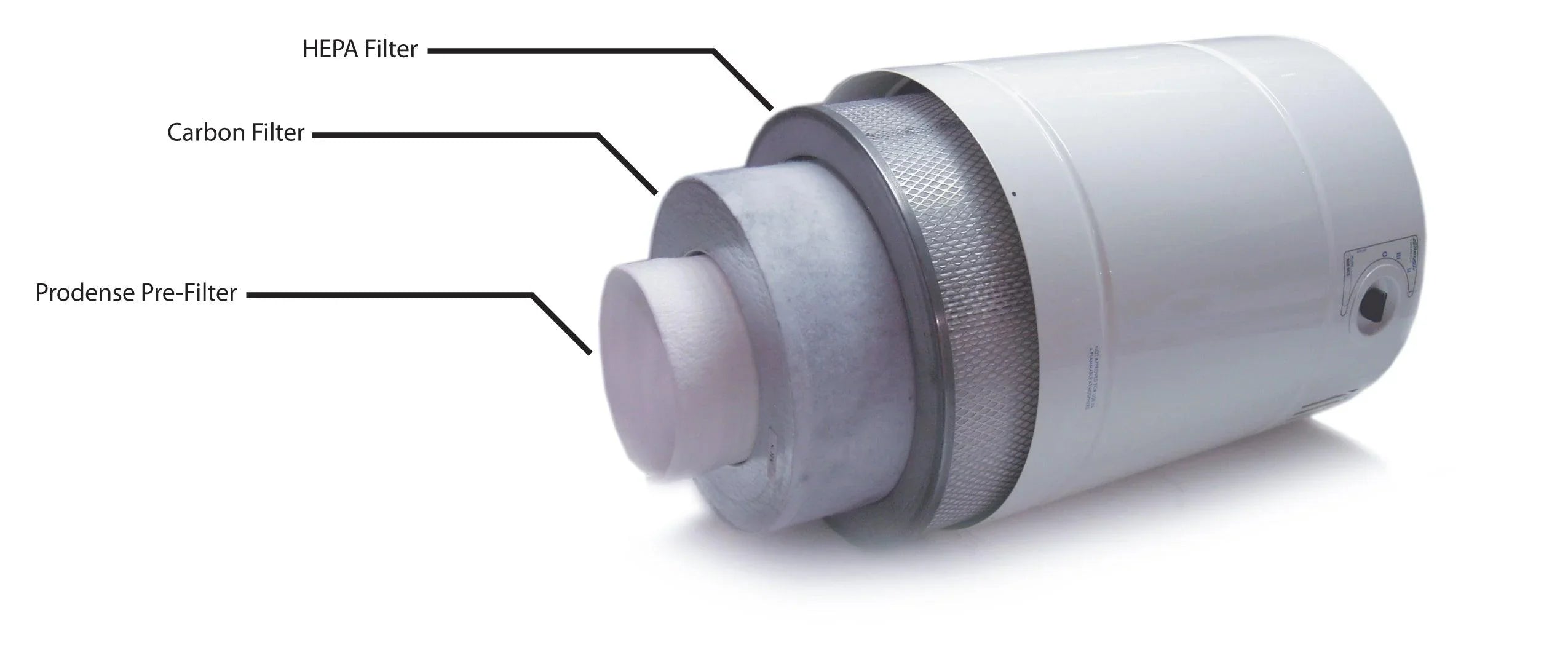 - Superior Filtration: Featuring a 2" deep activated carbon filter, the Pro 5 MCS effectively captures chemicals, fumes, and odors, while the medical-grade HEPA filter eliminates 99.97% of airborne particles as small as 0.3 microns.