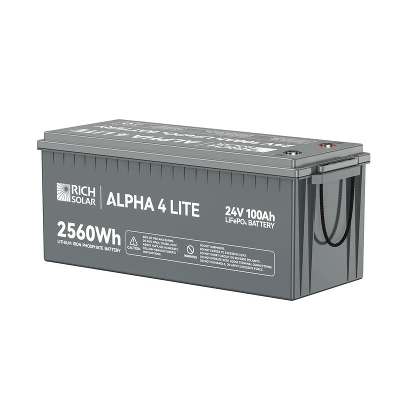Rich Solar ALPHA 4 LITE | 24V 100Ah LiFePO4 Battery | Fast-Charging 24V Lithium Battery for RVs, Trailers, Vans, Boats, Off-Grid, Backup | 4,000 Lifetime Cycles | Best Value
