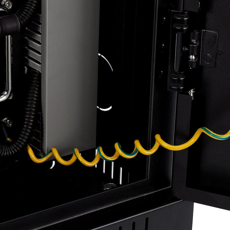 The ALPHA 5 PRO features a 3U rack-mount design, fitting seamlessly into server racks. Its robust sheet metal casing ensures durability and strength, while the removable carry handle simplifies transport and installation.