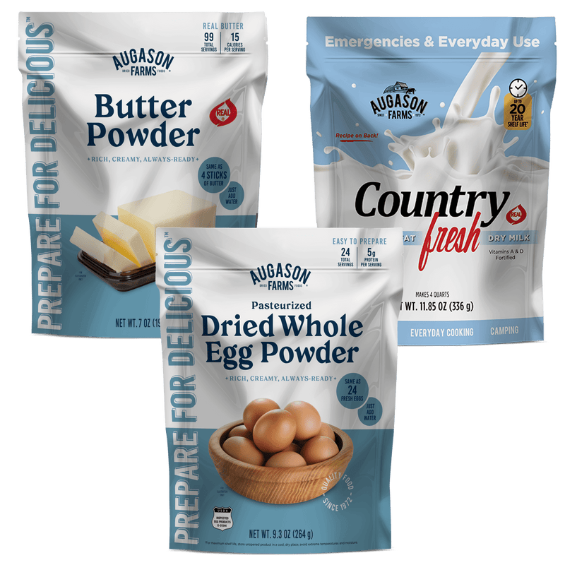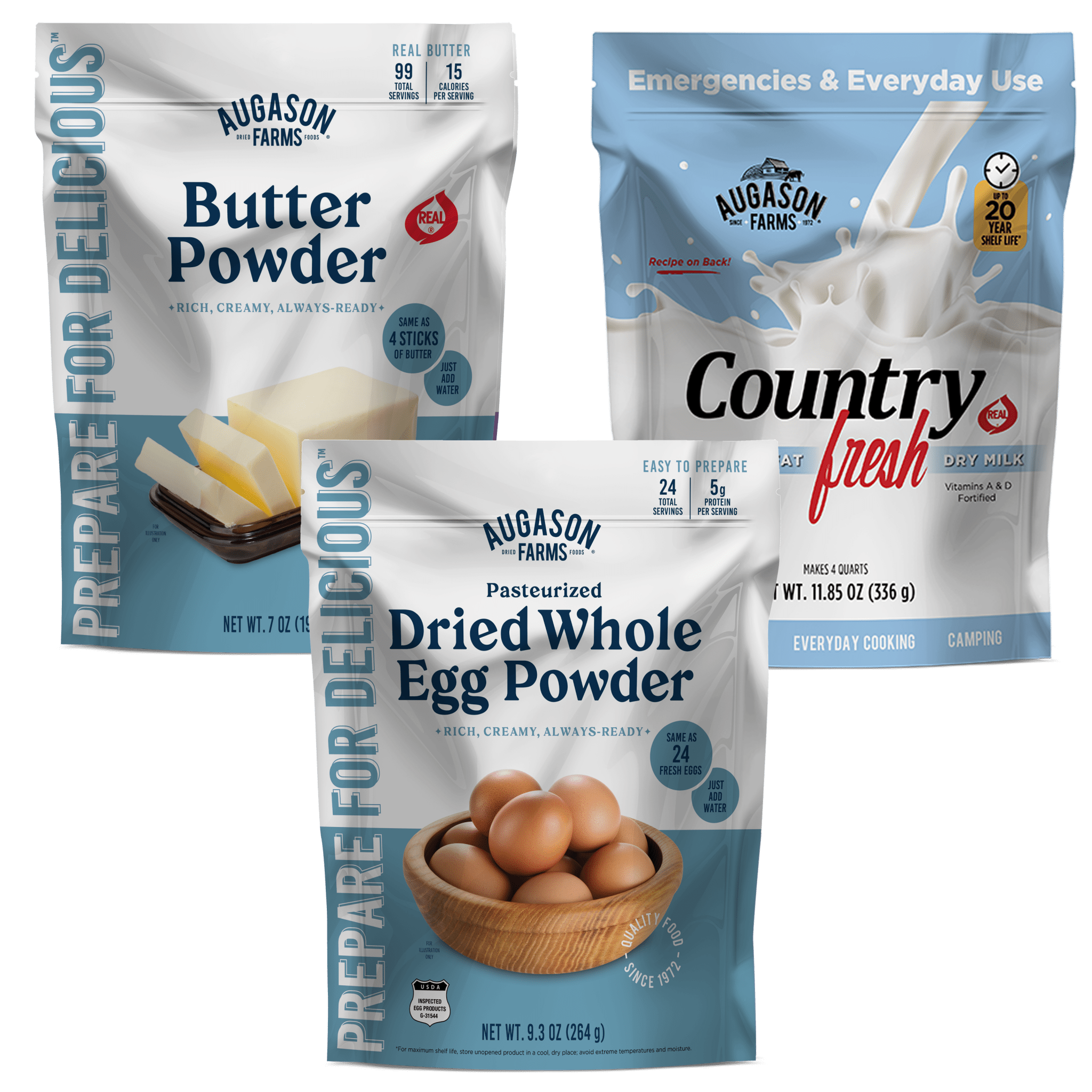 Stock your pantry with the key to great baking. This shelf-stable variety pack of real milk, eggs, and butter delivers homemade flavor without the need for refrigeration. Prefect for for everyday meals and emergency food storage.