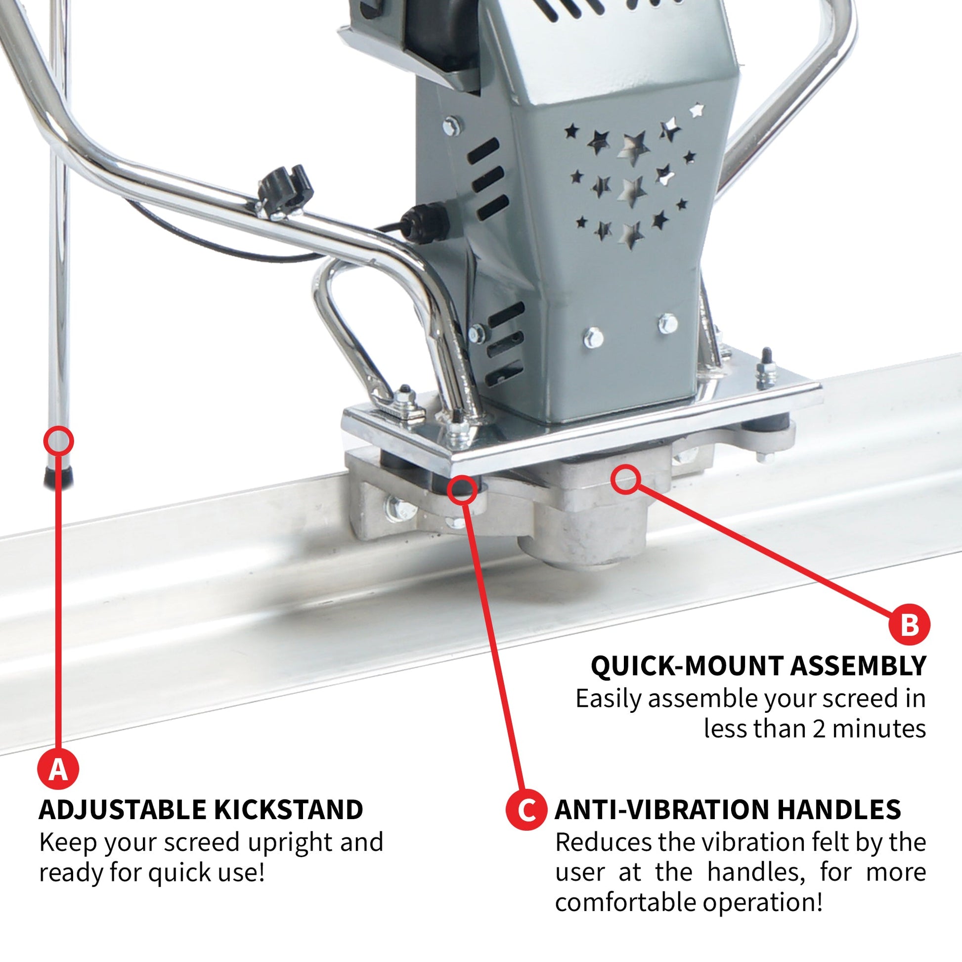 Whether you're pulling a 4ft or a 14ft bar, screed up to 600 cubic yards (60,000 ft²) of concrete without loss in performance!