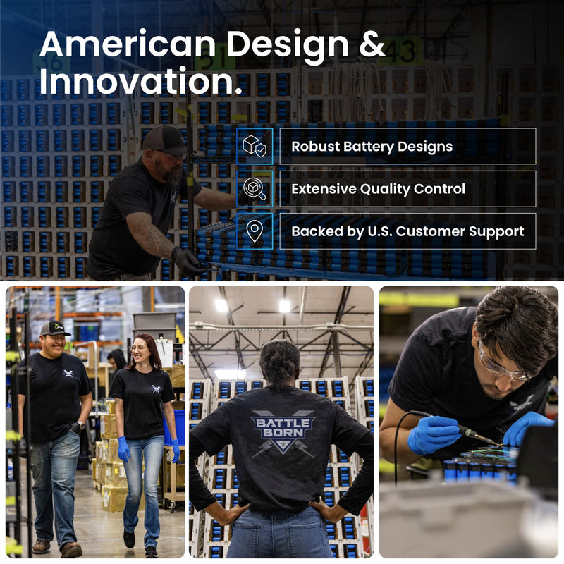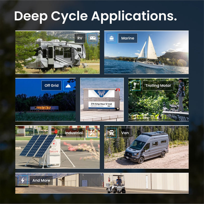 - Rugged Battery Design built for RV, camper van, boat, trolling motor, industrial, off-grid, and residential backup applications