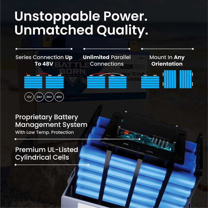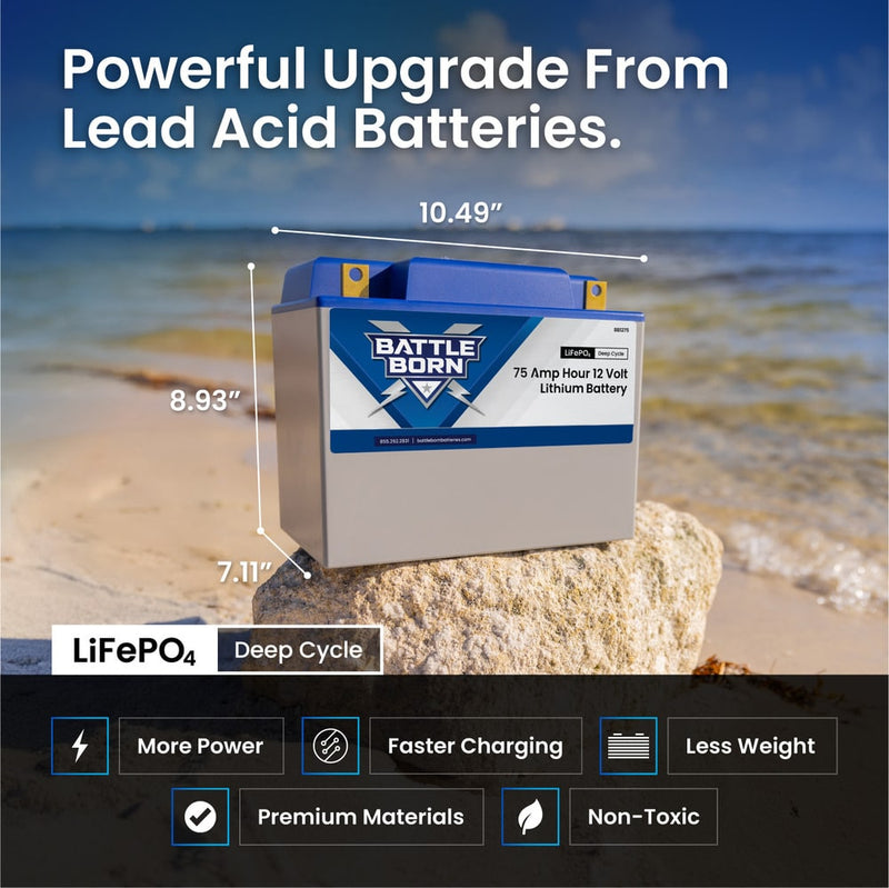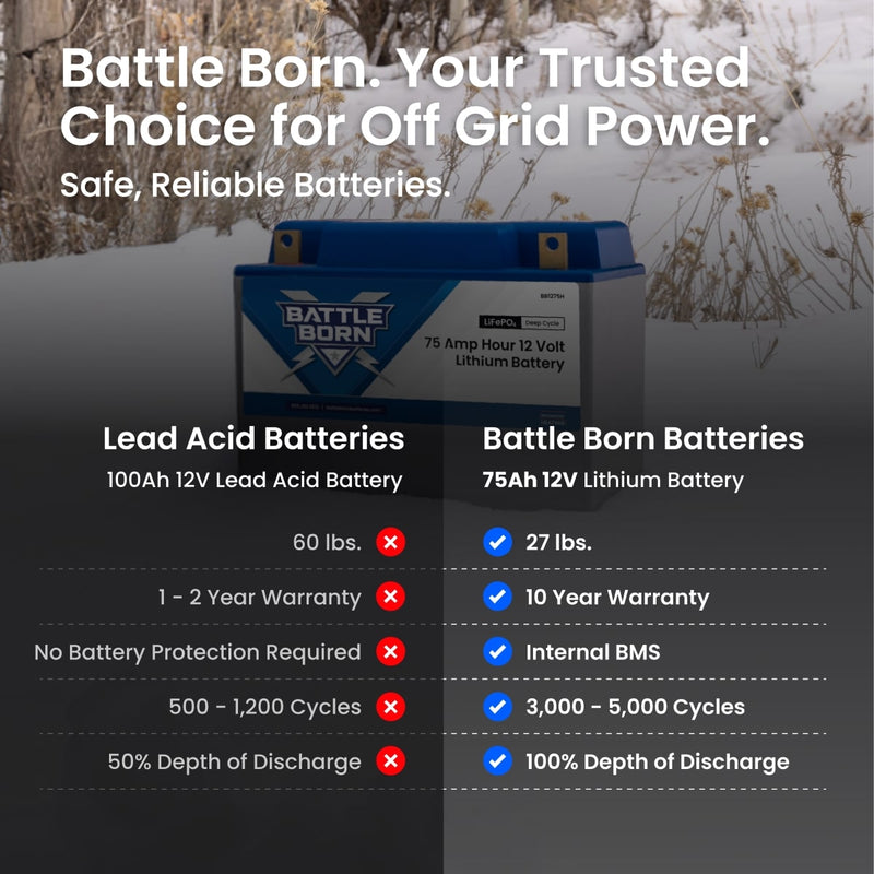 Battle Born 75Ah 12V Group 24 LiFePO4 Heated Battery Kit