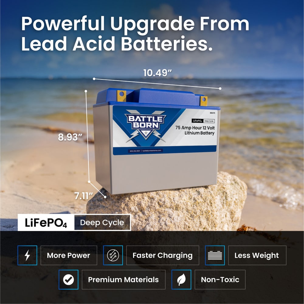 - Lightweight at just 27 pounds for 75Ah of usable power