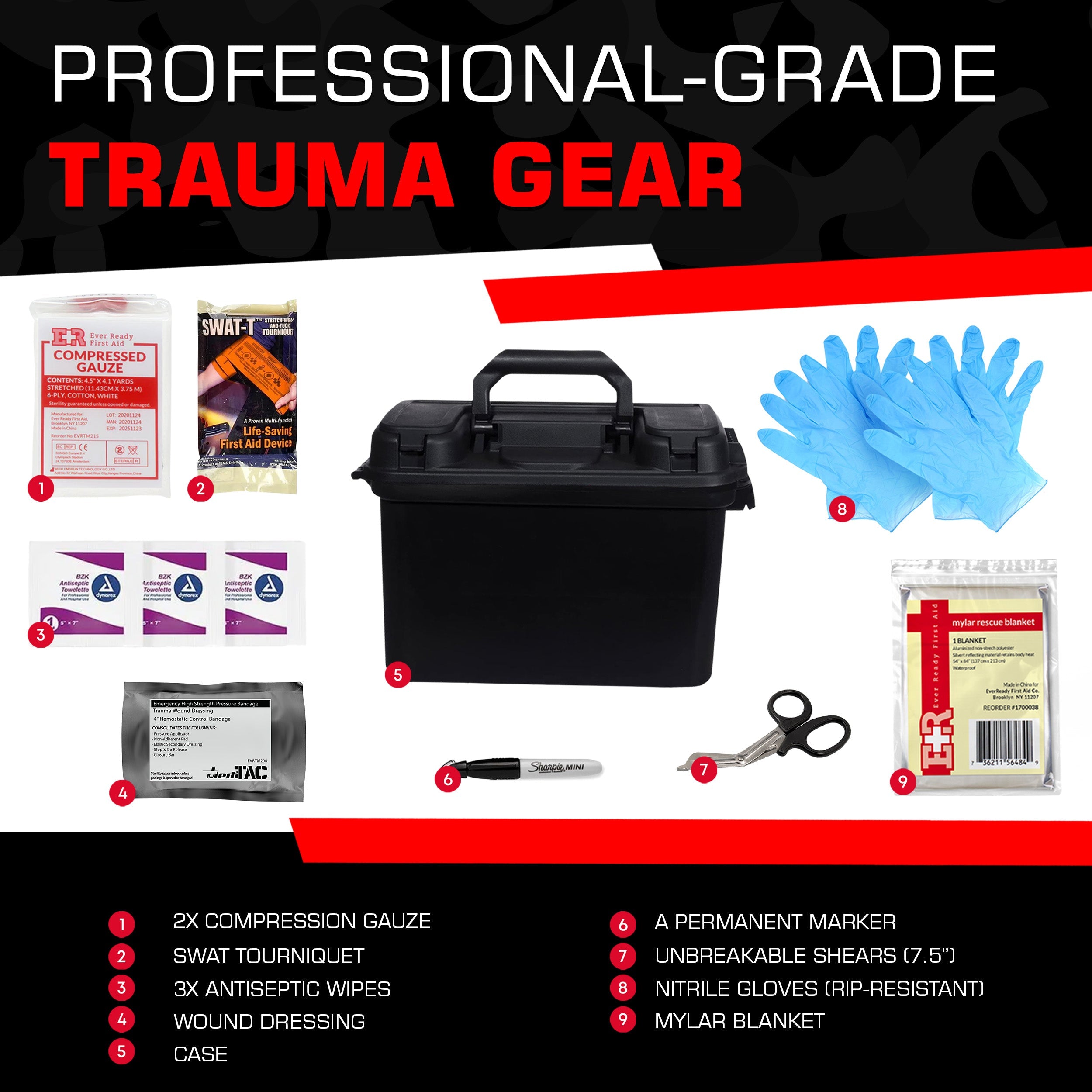Contains 4 individual vacuum-sealed kits for quick access and emergency use.