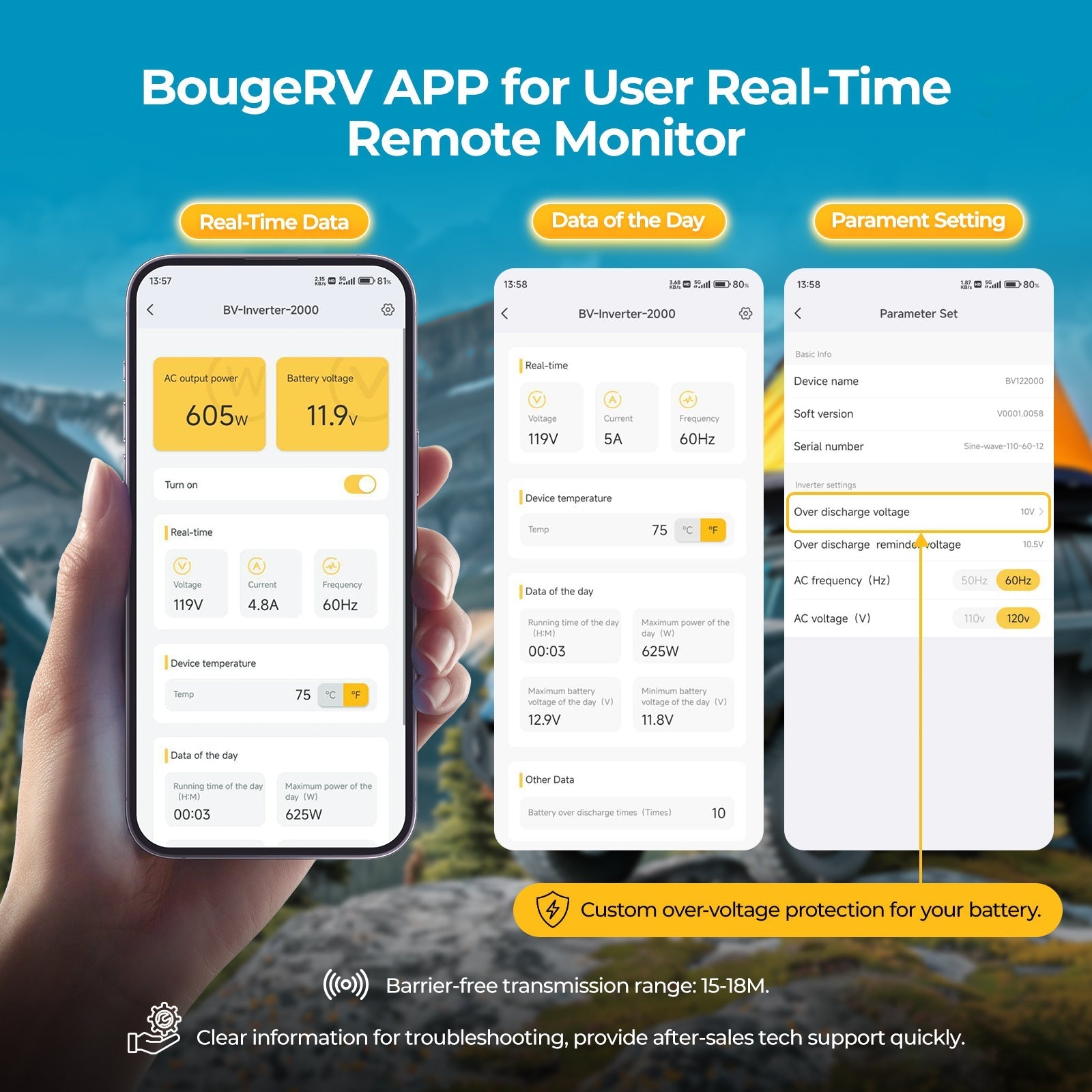 - 1PC 2000W 12V Pure Sine Wave Inverter with Bluetooth