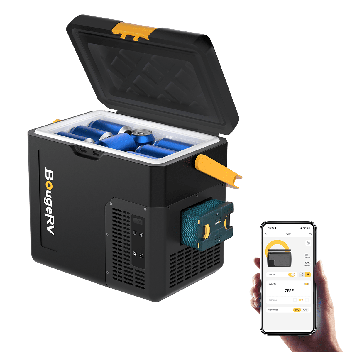 BougeRV CRH 19QT 12V Portable Car Fridge with 173Wh Battery
