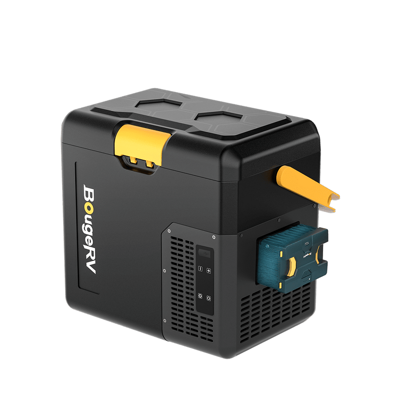 BougeRV CRH 19QT 12V Portable Car Fridge features a one-hand grab handle and an ultra-compact design that fits effortlessly into your car's front or back seat. Despite its small size, this mini car fridge packs serious performance—cooling down to -4℉ to keep your food and drinks fresh anywhere you go. The detachable 173Wh battery delivers up to 8.5 hours of runtime, giving you reliable cooling during road trips, camping, or power outages.