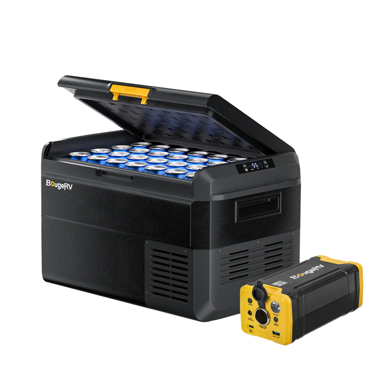 The BougeRV CRS 42QT 12 Volt portable car fridge is the perfect companion for your car freezer and camping needs, providing adjustable cooling from -20°C to 20°C. With a spacious 40L capacity (holding up to 58 cans), it features a powerful compressor that cools in just 15 minutes. Experience ultra-quiet operation at only 35dB, convenient smart APP control. This 12 Volt portable refrigerator is ideal for RVs, trucks, SUVs, and outdoor activities.