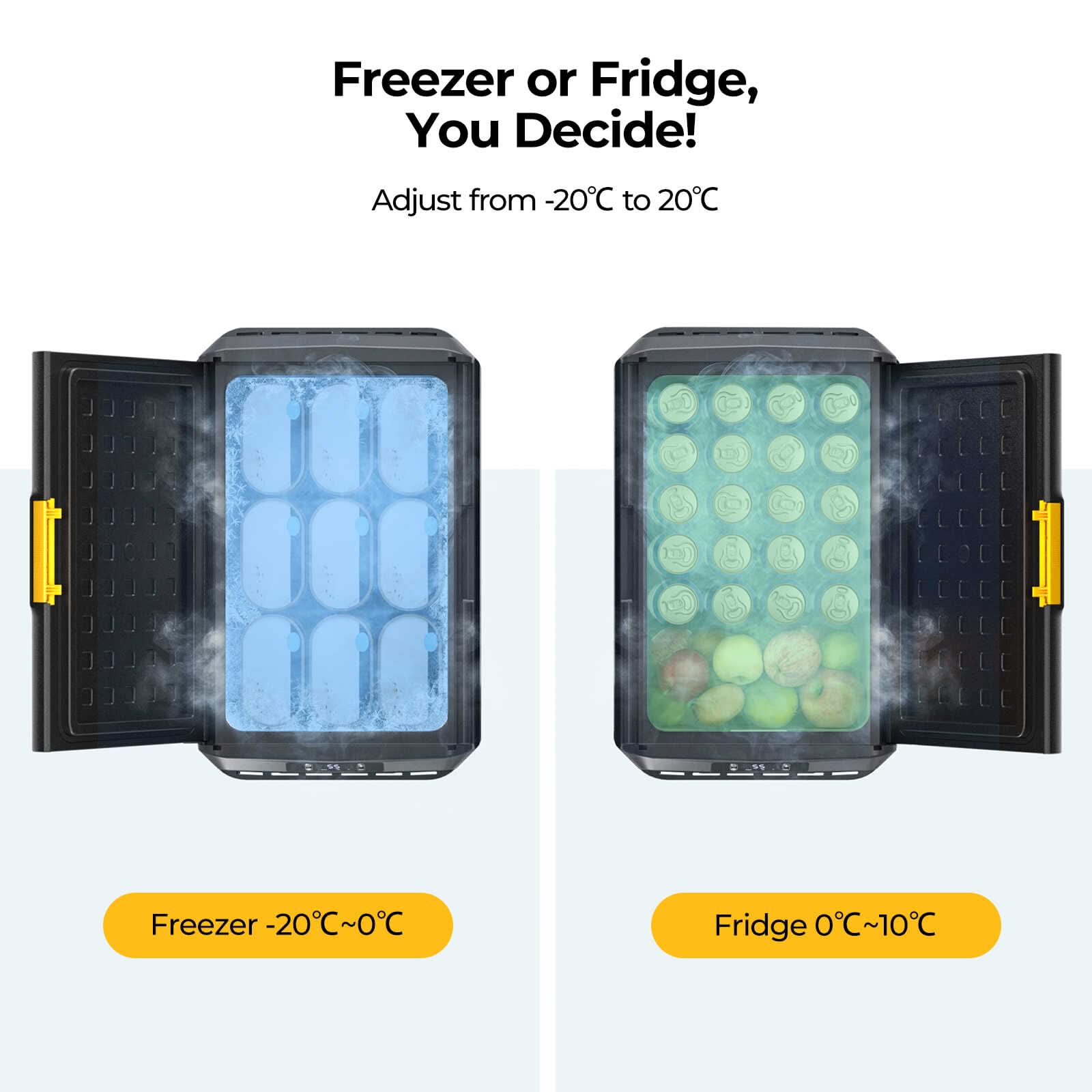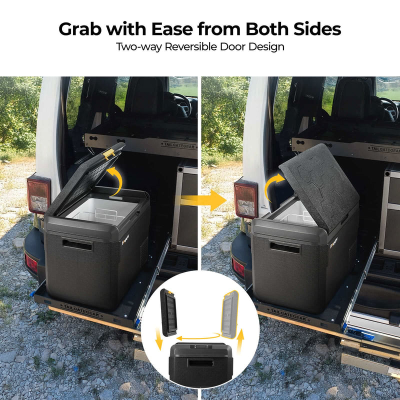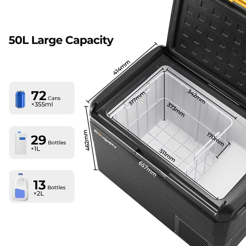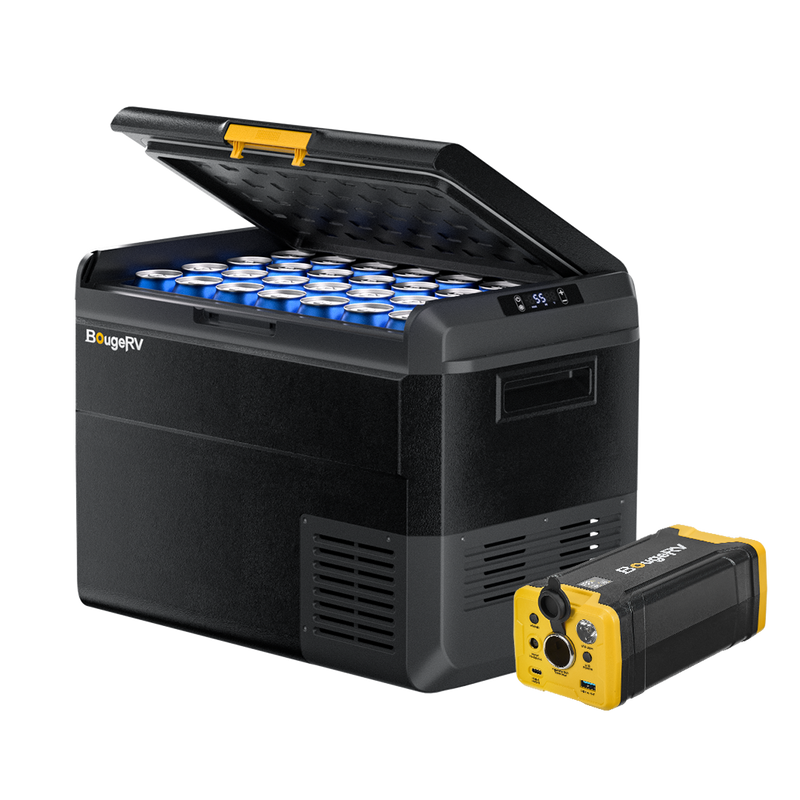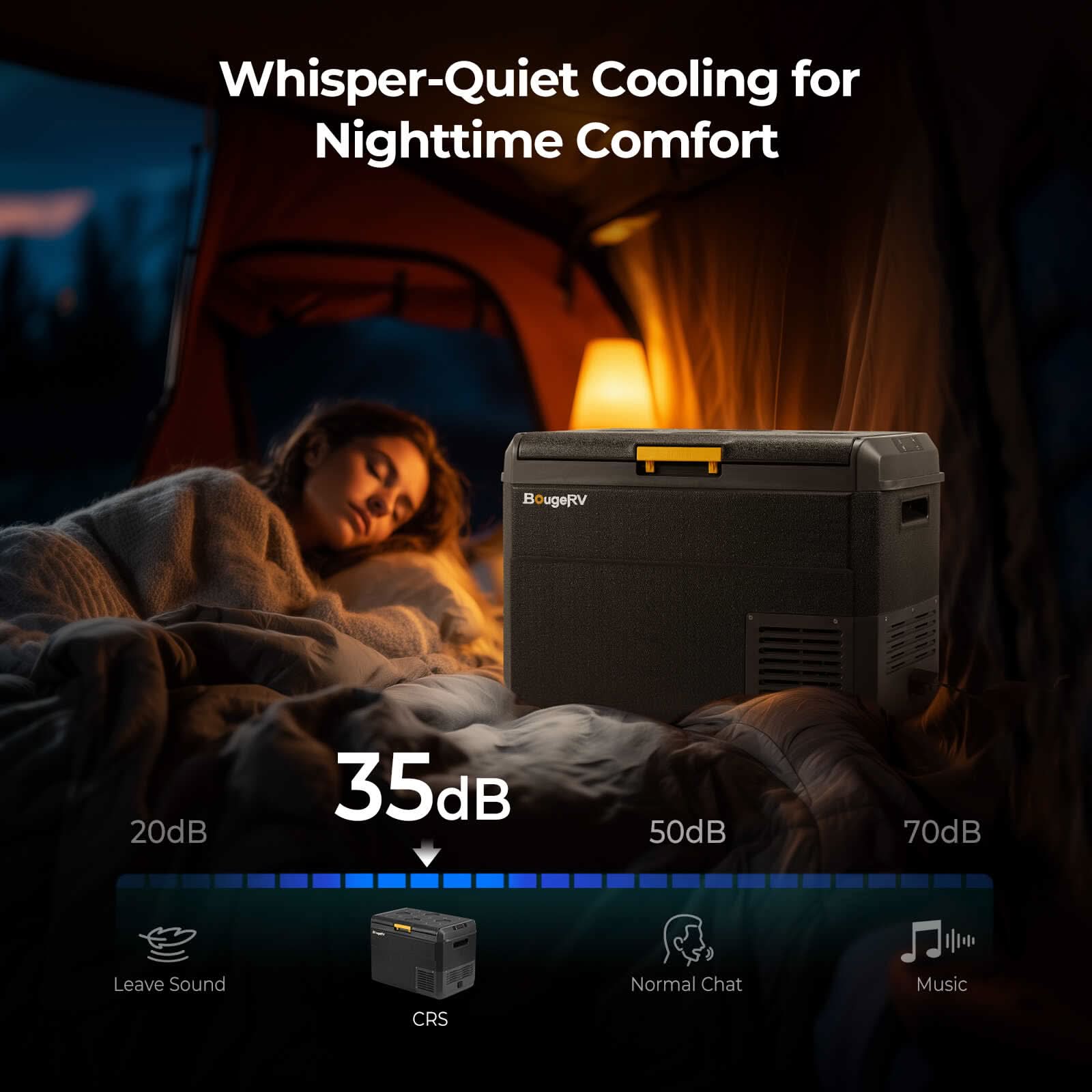 The BougeRV CRS 53QT 12V RV fridge is the perfect choice for RVers, overlanders, and campers. This versatile 12V fridge/freezer offers a wide temperature range from -20°C to 20°C, meeting all your cooling needs. With a spacious 50L capacity (holding up to 72 cans) and a powerful compressor for fast cooling in just 15 minutes, it delivers reliable performance. Enjoy whisper-quiet 35dB operation for peaceful nights and convenient APP control for easy adjustments, making it an excellent companion for your outdoor adventures.