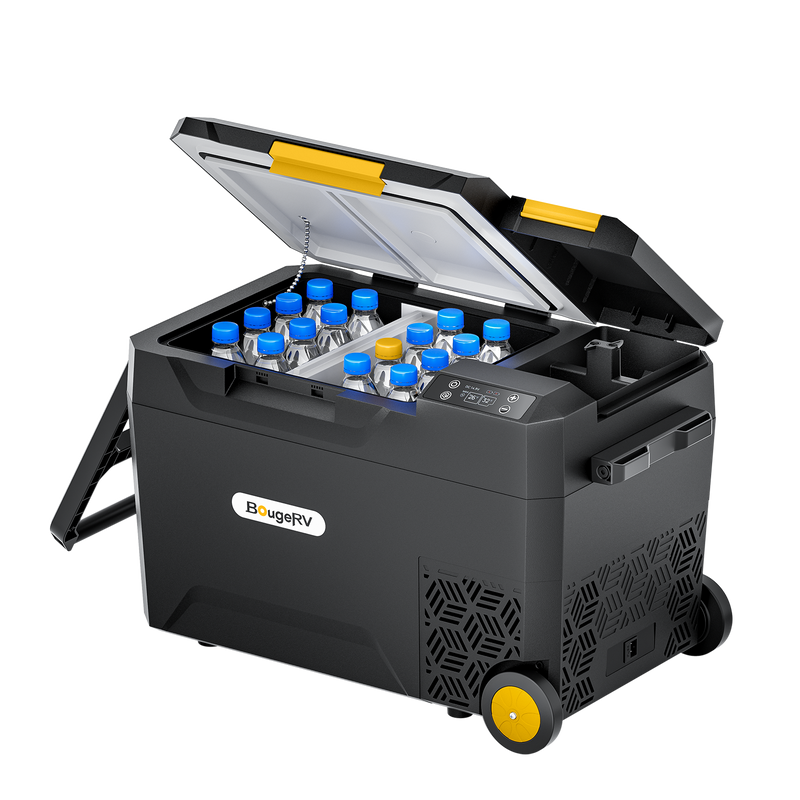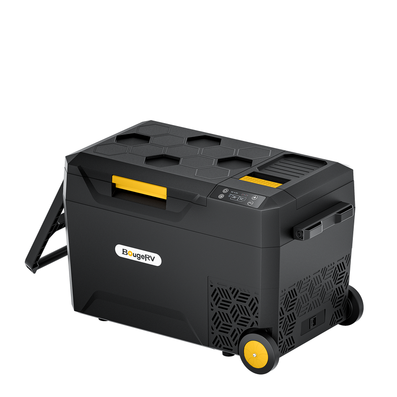 BougeRV CRX2 dual-zone fridge offers rapid cooling from 77°F to 32°F in 10 minutes, ensuring your food and drinks stay fresh on the go. The built-in dual battery design offers extended operation, perfect for outdoor adventures, camping, or road trips. Its dual-zone functionality allows you to use it as a fridge and freezer simultaneously. Compact yet powerful, this battery-powered fridge delivers unmatched convenience for every journey.