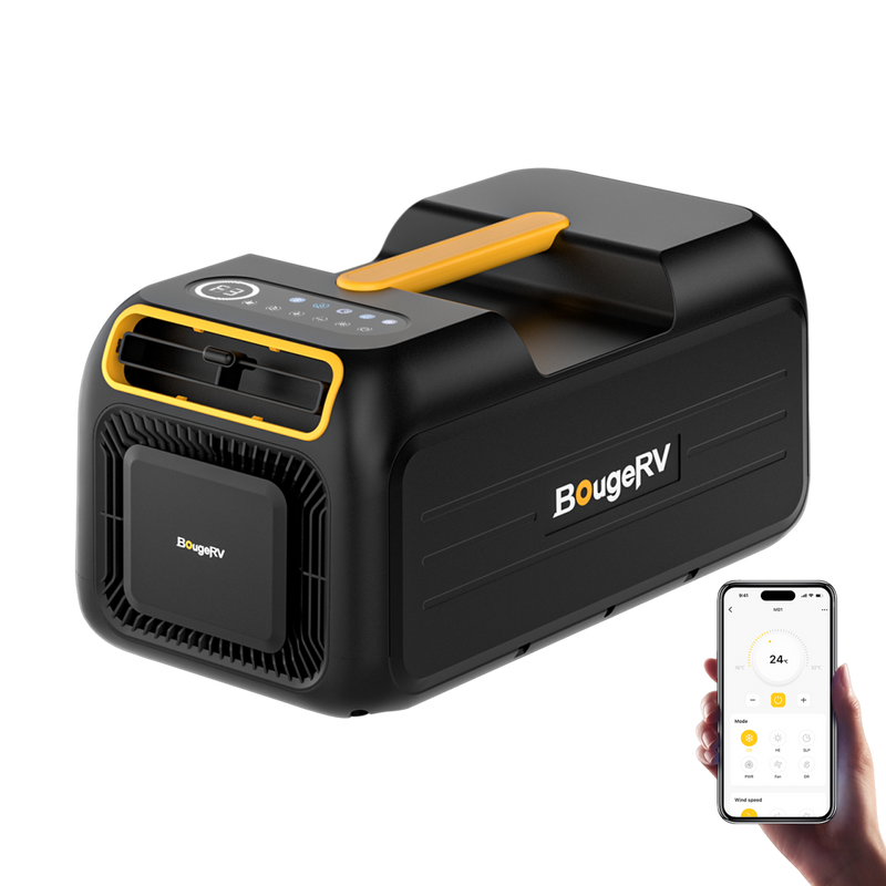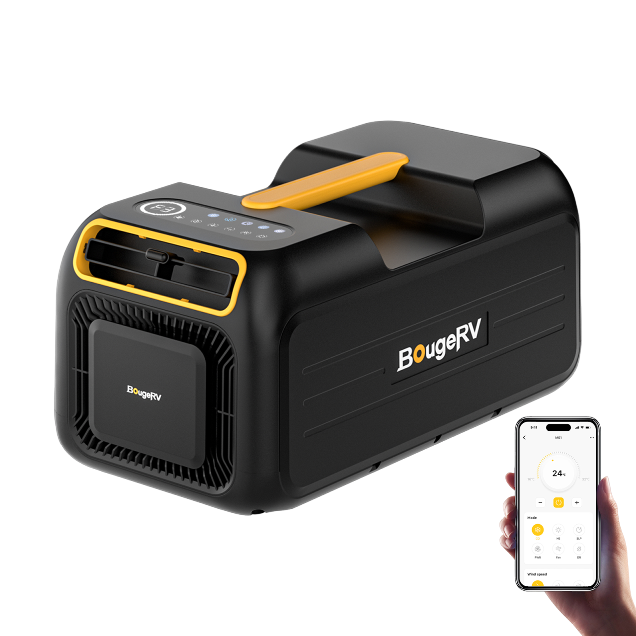 🌬️ Stay Cool, Anywhere, Anytime! ❄️BougeRV Portable Tent Air Conditioner delivers 3500 BTU of powerful cooling, dropping temperatures by 18℉ in just 15 minutes. With 5 smart modes and whisper-quiet operation, it keeps you cool without the noise. Compact, powerful, and easy to carry, this portable air conditioner keeps your tent, RV, or camper perfectly chilled—even in the hottest weather!❄️