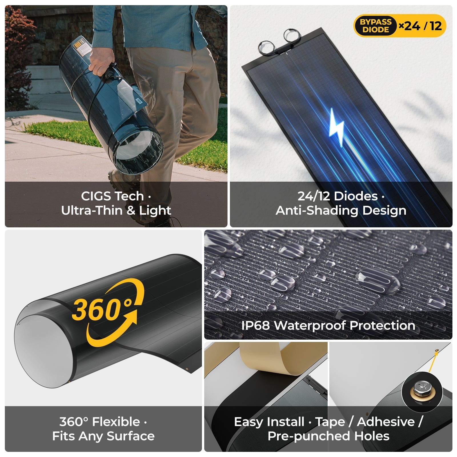 BougeRV Yuma 100W CIGS Thin-film Flexible Solar Panel with Tape (Long Version) (SC)