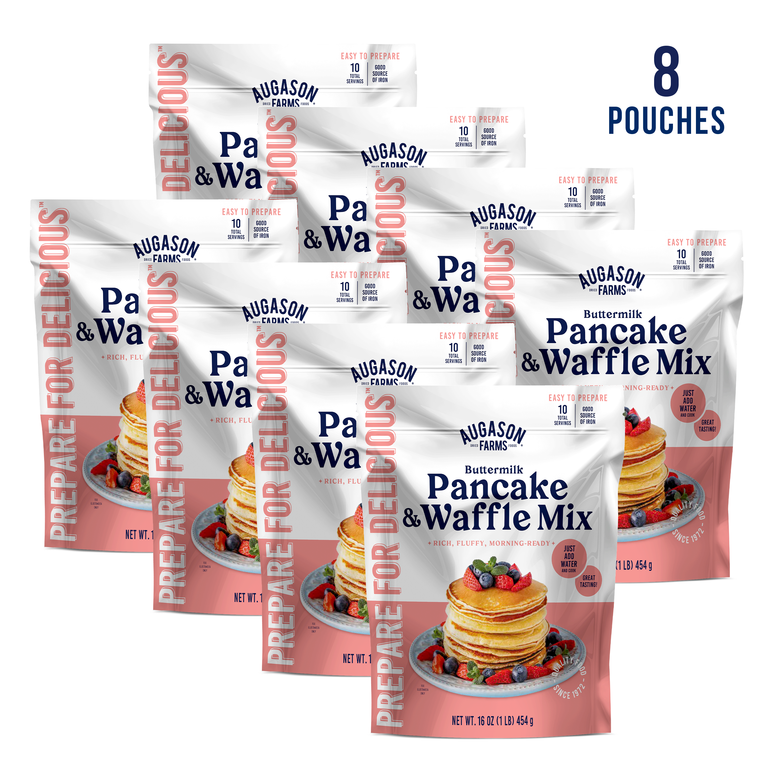 Enjoy Augason Farm’s mouthwatering buttermilk pancakes or waffles at home, on camping trips, or when an emergency calls for a hot plate of comfort food. Just add water to make irresistible pancakes and waffles that rival any pancake mix on the market.