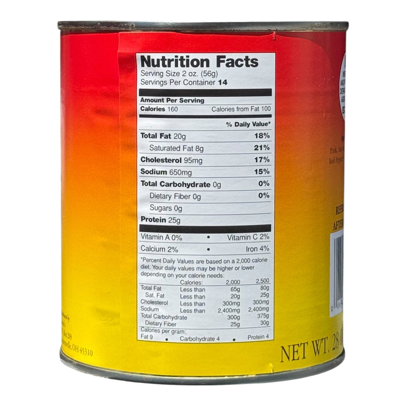 Enjoy the taste, quality, and peace of mind that only Yoder’s Canned Pork Sausage can provide. Each 28 oz (#2.5) can holds 1¾ pounds of premium, US-raised pork, fully cooked, tender, and ready to eat straight from the can. That's 21 lbs of fully cooked meat per case! Whether you’re preparing for emergencies, stocking up for camping trips, or building your long term food storage, this shelf-stable pork is a reliable source of protein you can trust.