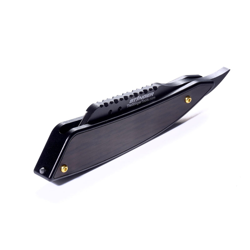 Minimal, functional, and sleek is the definition of the Stinger Butterfly Comb. The full opened length is only 7.4 inches and when closed, it stands at less than 5.1 inches in length and less than 0.6 inches in thickness. The miniature size of the box cutter means it can easily be hidden in any coin pocket, or wallet, or attached to a set of keys.