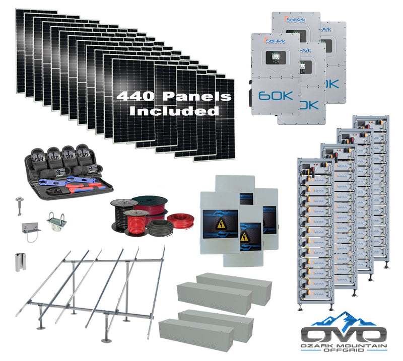 Commercial 240KW 3 Phase 480V Solar Kit + 4x 60K 480V Sol-Ark Inverter + 4x 60KW Sol-Ark Indoor Lithium Battery +242KW Solar with Ground Mount and Wiring
