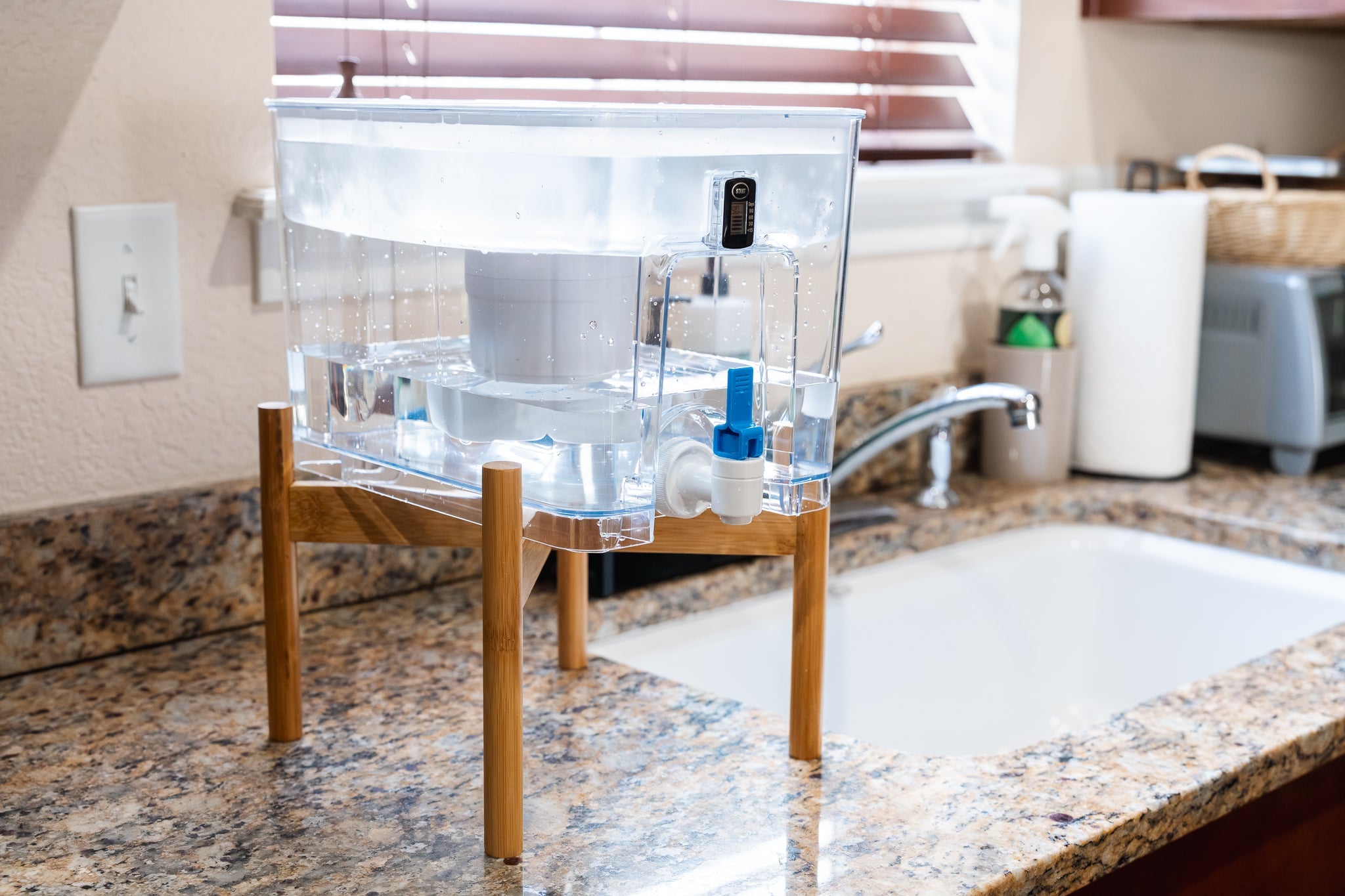 Enhanced Water Flow: By raising your dispenser, our bamboo stand promotes better water flow, allowing for quicker and more efficient dispensing.
