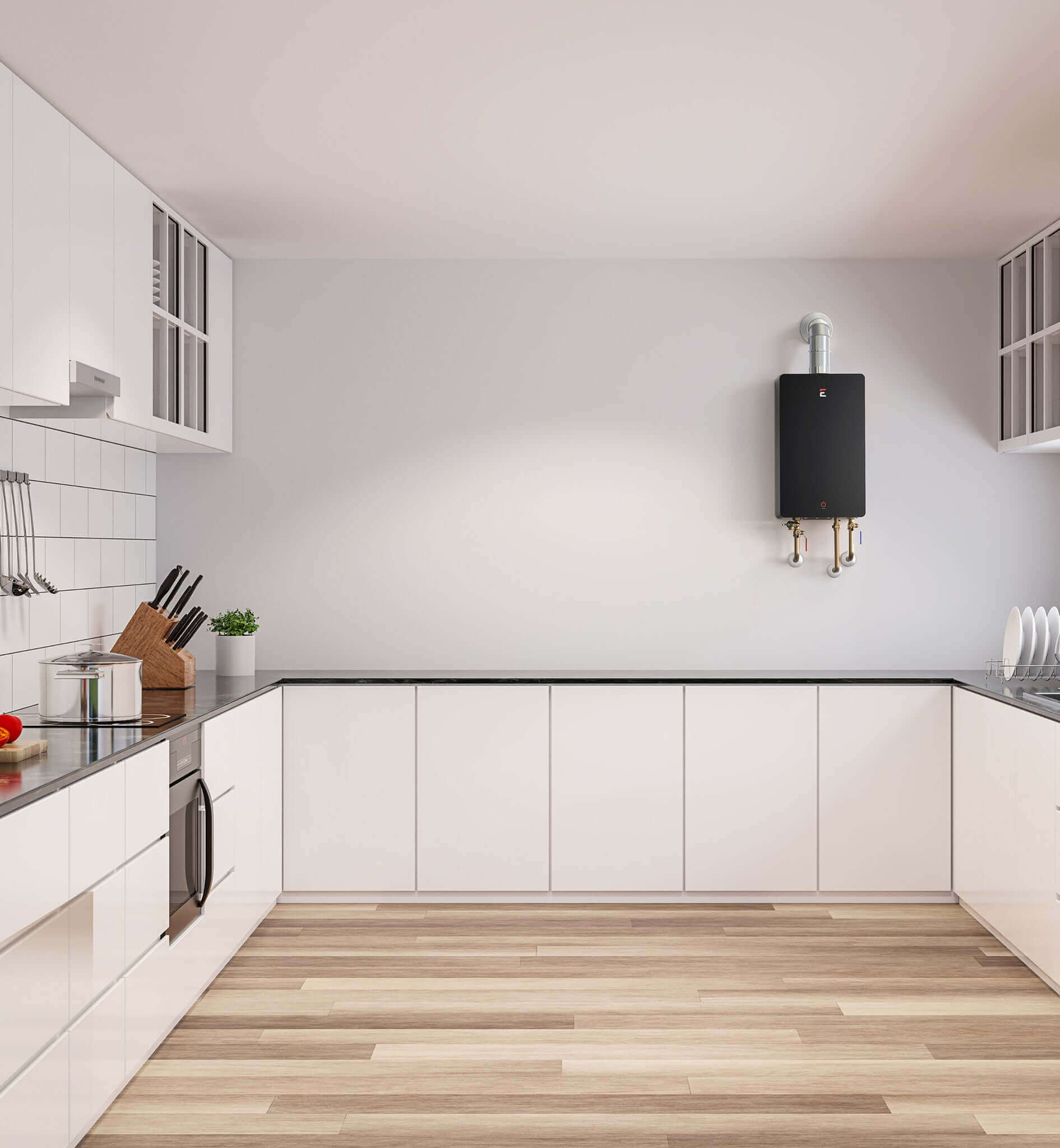 With our 3-inch vertical and horizontal vent kits (sold separately), setting up this water heater indoors is effortless. Its sleek, wall-hung layout and elegant tempered glass front not only conserve essential floor room but also elevates the aesthetics of your living space.