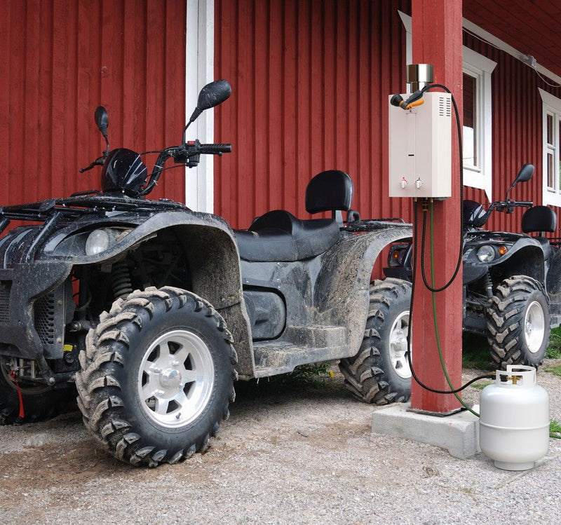 The Eccotemp L10 provides instant, endless hot water when you simply attach a garden hose and a 20-pound propane tank.