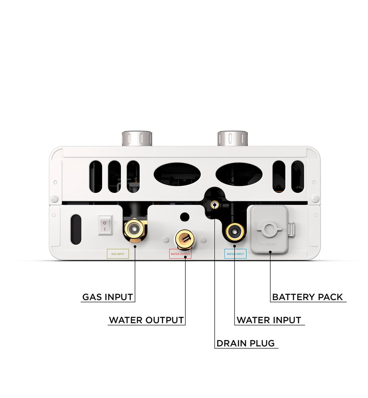 The EL5 includes an Anti-Flame Tilt Switch that shuts the water heater off when tilted past 45 degrees, as well as multiple sensors that regulate temperature and prevent scalding.