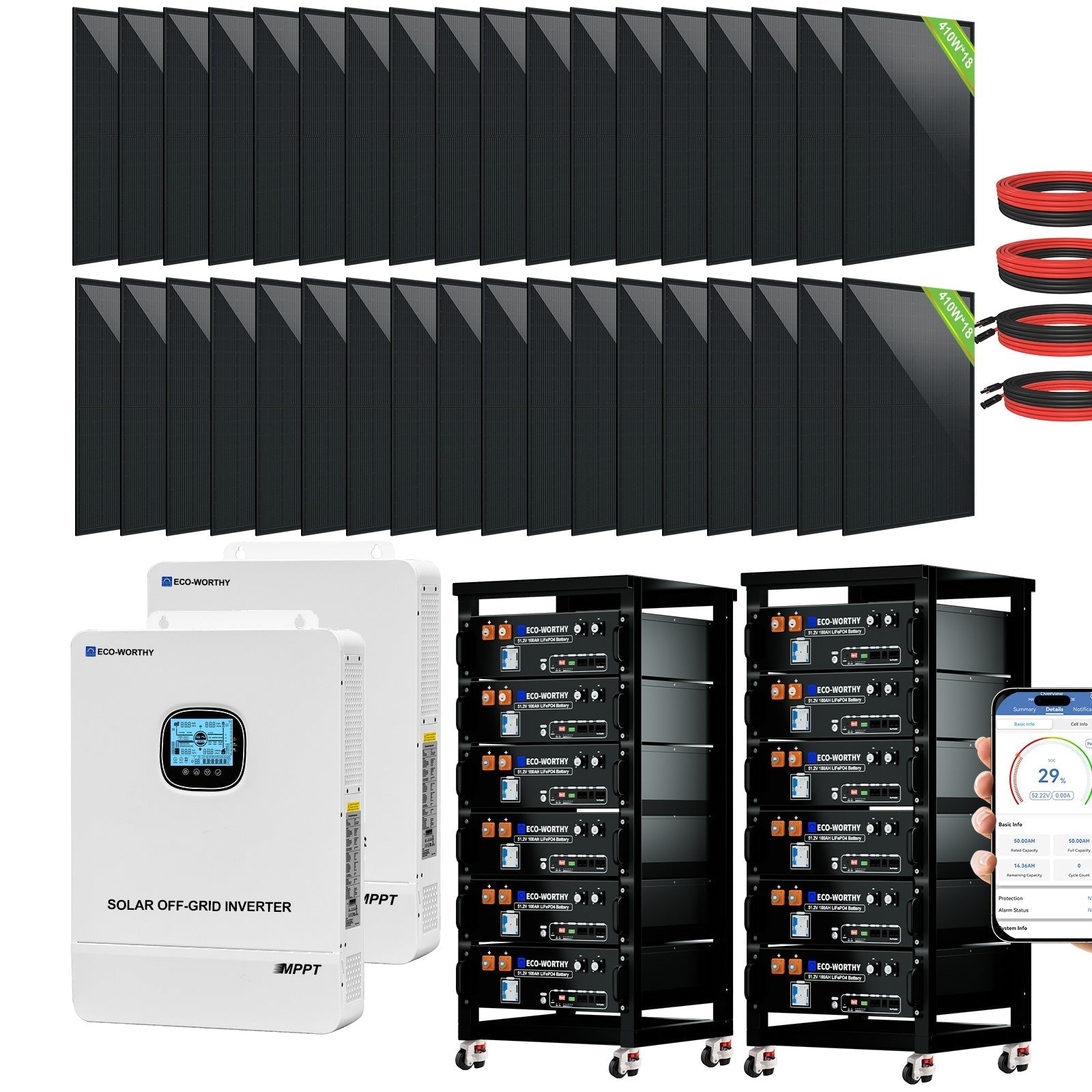 ECO-WORTHY Complete Off-Grid Solar Power System | 10000W 120/240V Output | 20.48kWh–61.44kWh Lithium Battery | 4920W–14760W PV Input