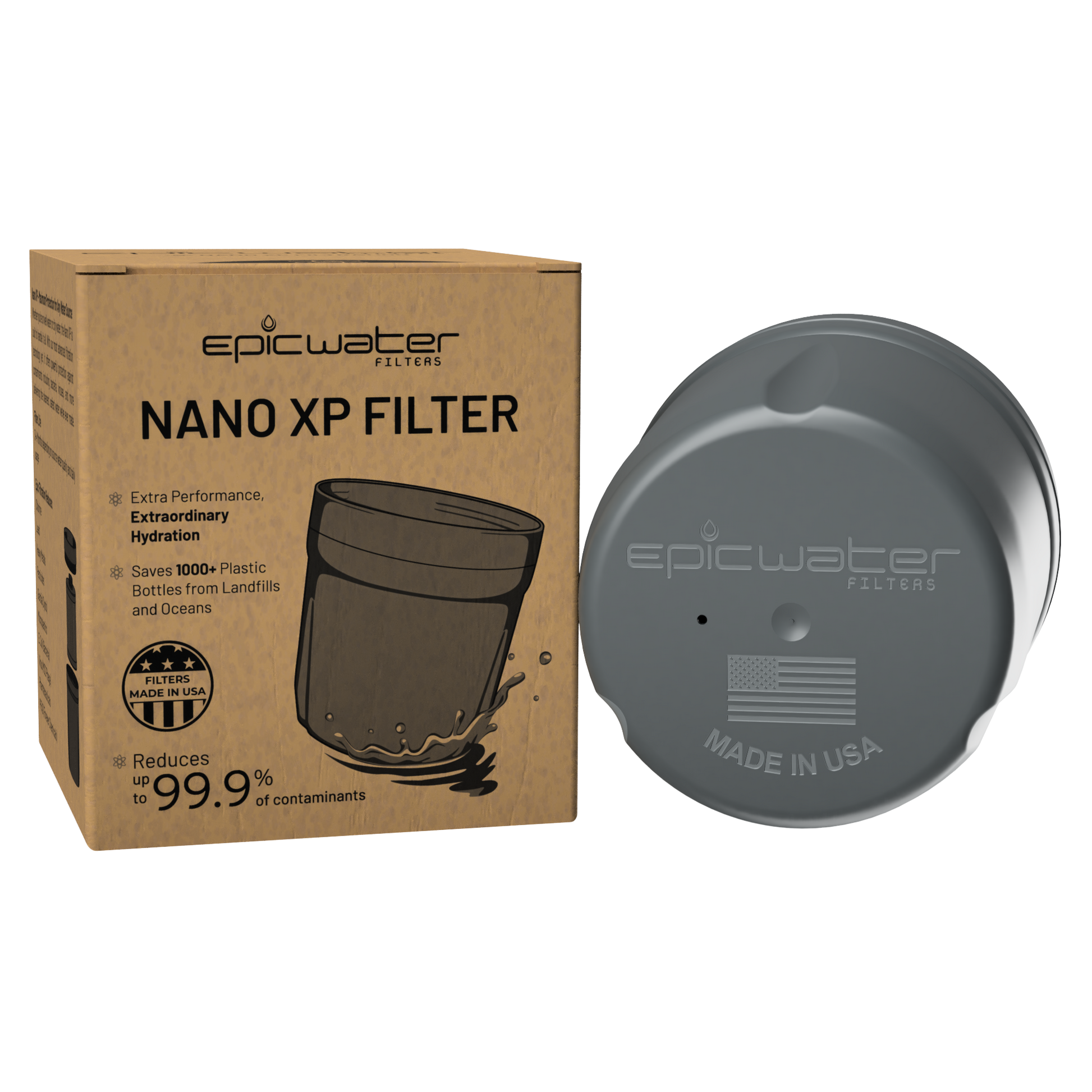 With its replaceable inner cartridge, the Nano XP cuts plastic waste by 75% while preventing over 1,000 single-use bottles from reaching landfills. Proudly assembled in the USA using premium filtration media, it combines powerful contaminant reduction with a sustainable design—delivering clean, safe water and a positive environmental impact.
