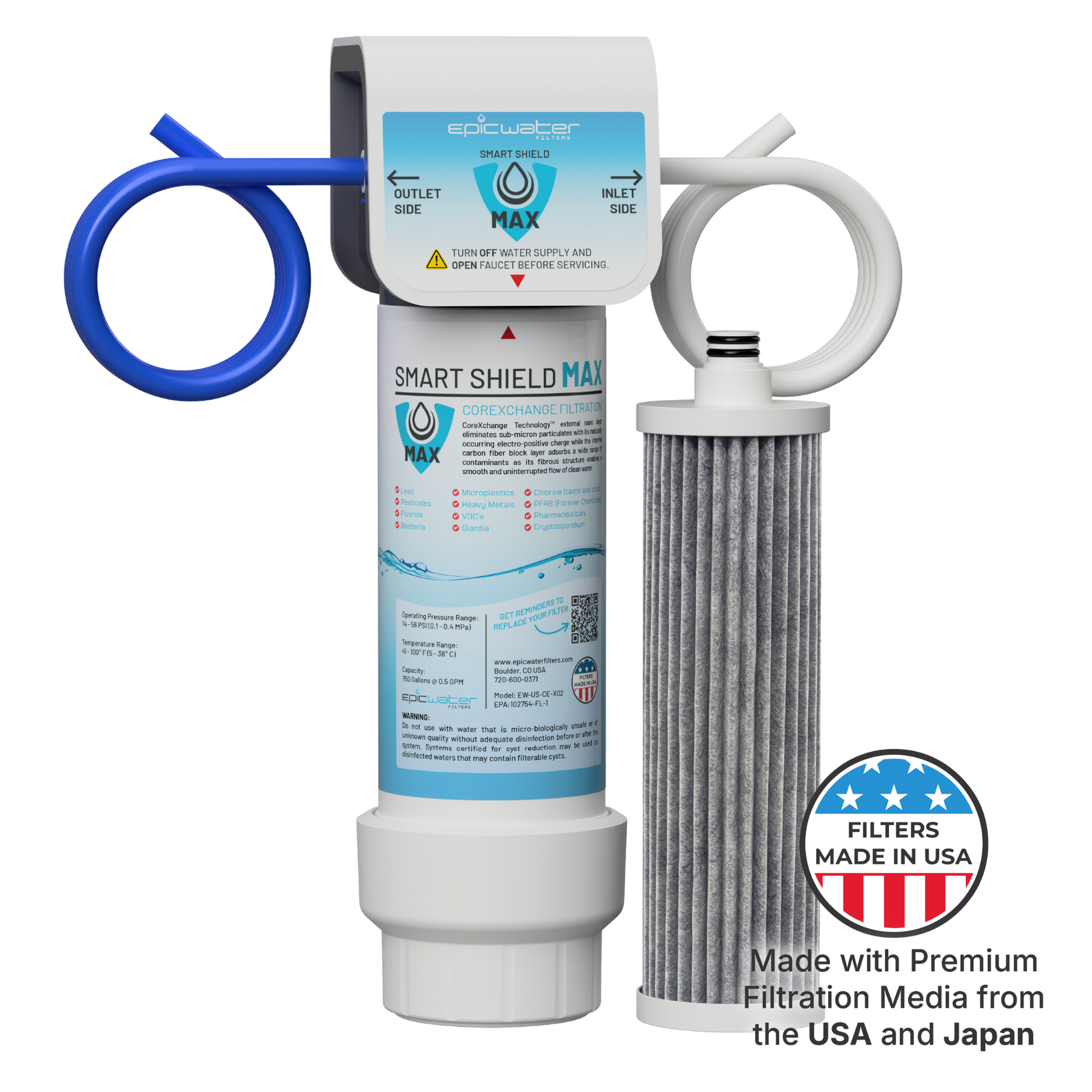 Our original Smart Shield uses solid carbon block technology, a proven method since the 1970s. But today’s contaminants demand more. Smart Shield Max features CoreXchange™ Technology, a three-layer system designed to handle what traditional filters can’t.