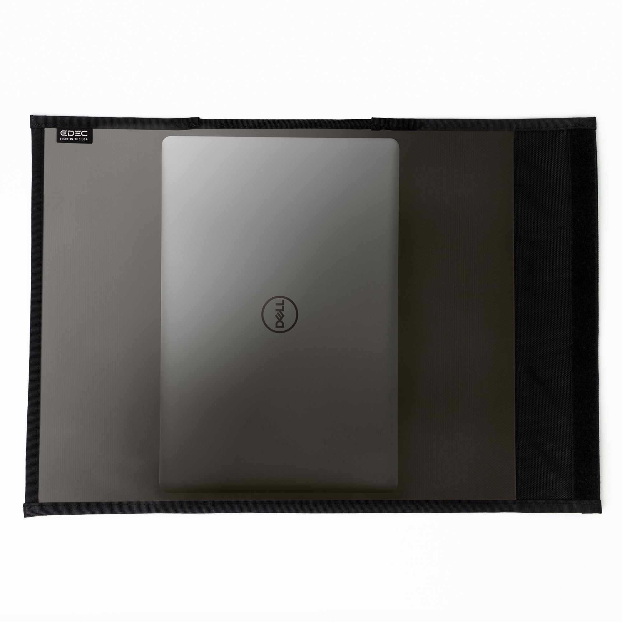 The XL bag is large enough to protect laptop computers or multiple smaller devices at once for secure travel. As with all other EDEC bags, quad-layer Faraday construction provides advanced shielding for the wide range of wireless devices that may be stored inside.