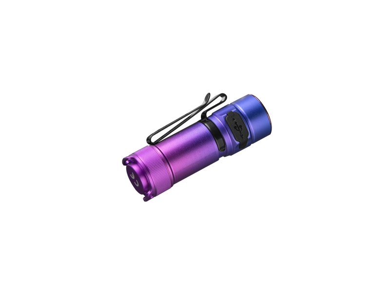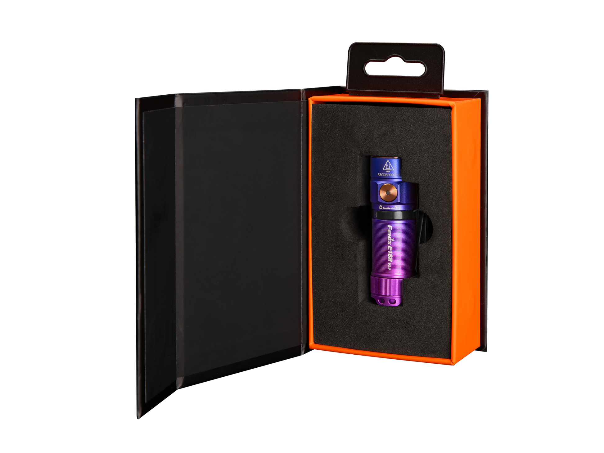 The Fenix E18R V2 is a pocket-sized powerhouse, measuring under 3 inches long yet boasting an impressive 1200-lumen maximum output and 479-foot beam throw. It's directly rechargeable with a USB Type-C fast charger and includes an ARB-L16-800P 16340 battery giving up to 200 hours of runtime with just 1.3 hours of charging. A one-lumen moonlight mode and integrated magnetic base make the E18R V2 an all-in-one EDC star. It's also highly durable with A6061-T6 aluminum construction, 1-meter drop-rating, and IP68 waterproof protection. Plus, it has self-defense strobe and two lockout methods for added safety. Order today and make the E18R V2 your new favorite EDC flashlight!