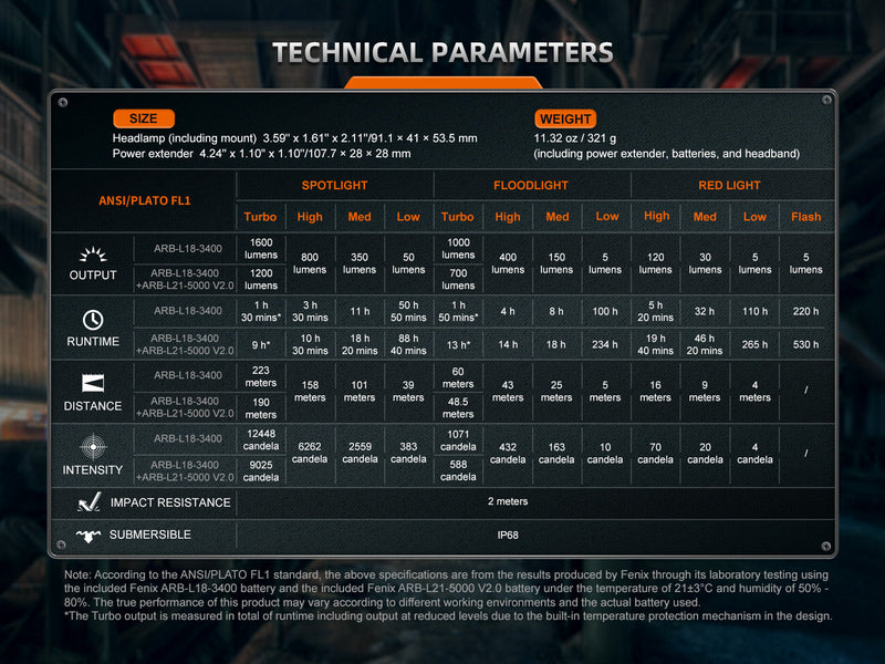 Designed to withstand the toughest conditions, the HM75R’s full metal body is both impact and corrosion-resistant. The extender cable securely locks into the headlamp, ensuring a reliable connection. Rated IP68 for waterproofing and tested for 2-meter drops, this headlamp is ready for any challenge. Additionally, the flashing red output enhances visibility and safety. The package includes 2 batteries - the ARB-L18-3400 battery goes into the headlamp and the ARB-L21-5000v2 battery goes into the included power bank. Whether for professional use, outdoor adventures, or emergencies, the HM75R headlamp is your dependable companion, lighting the way forward.