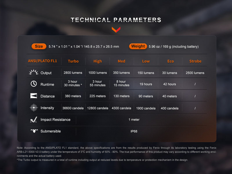 Built to last, it features HAIII hard-anodized aircraft-grade aluminum, ultra-clear anti-reflective glass lens, IP68 dustproof and waterproof rating, and impact resistance up to 1.5 meters. Compact yet rugged, it measures 145.8 × 25.7 × 26.5 mm and weighs 169 g including battery.