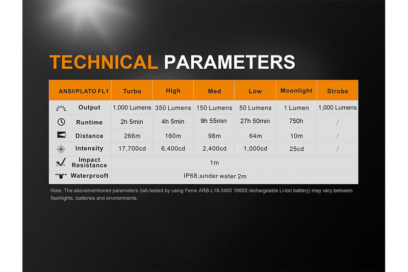 The Fenix UC35 V2.0 remains a reliable, pocket-sized, compact flashlight featuring micro USB charging, with a far-reaching beam. It is fitted with a CREE XP-L HI V3 LED that delivers an output of up to 1000 Lumens and a maximum distance of 872 feet/266 meters. One tactical tail switch and one functional side switch controls five output levels and the strobe mode. The boot-up battery level indicator ensures users are well prepared for the adventures ahead. The included 3400mAh 18650 Lithium-ion battery, plus compatibility with cold-resistant CR123 batteries, thoughtfully caters to the demands of various application scenarios. The Fenix UC35 V2.0 is a perfect utility flashlight for everyday carry, inspectors, pest control technicians, and general home use.