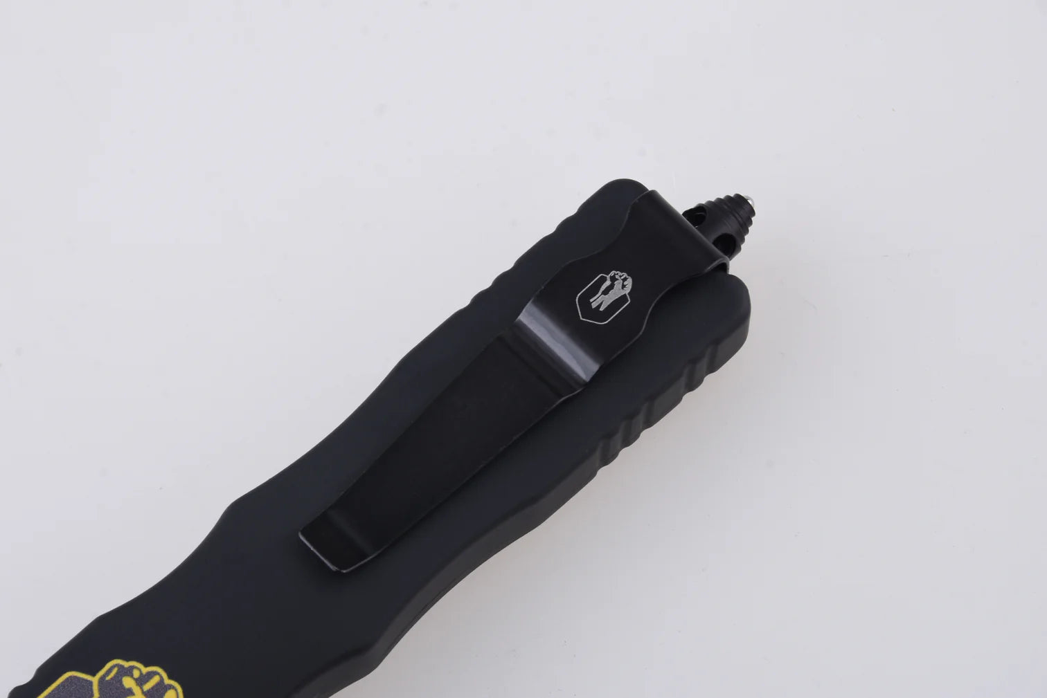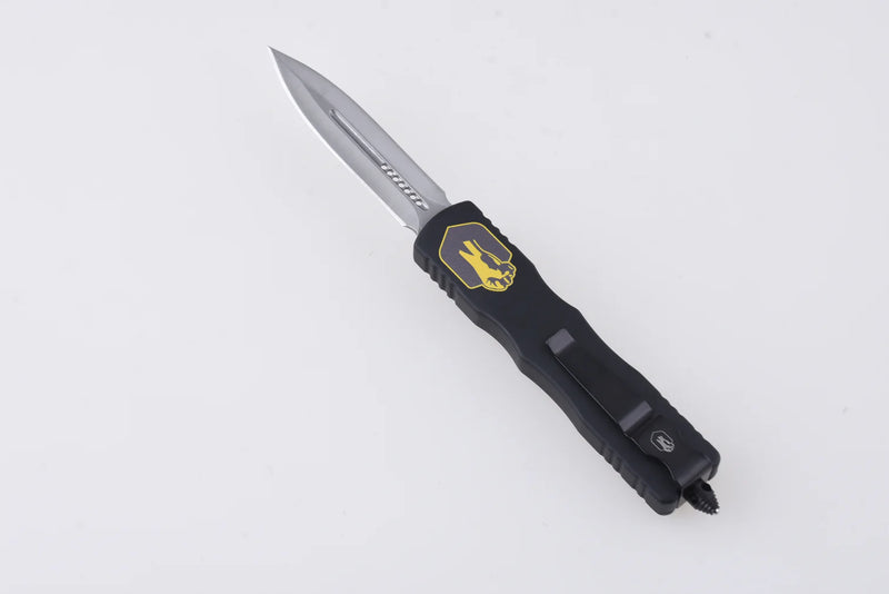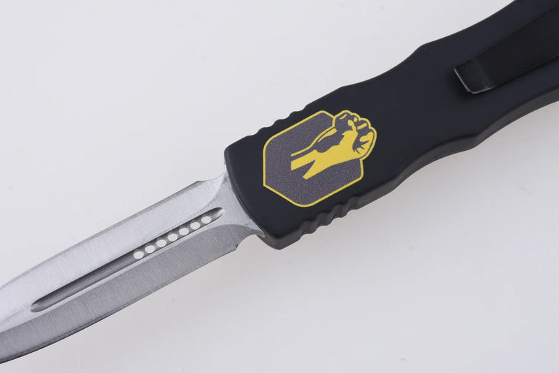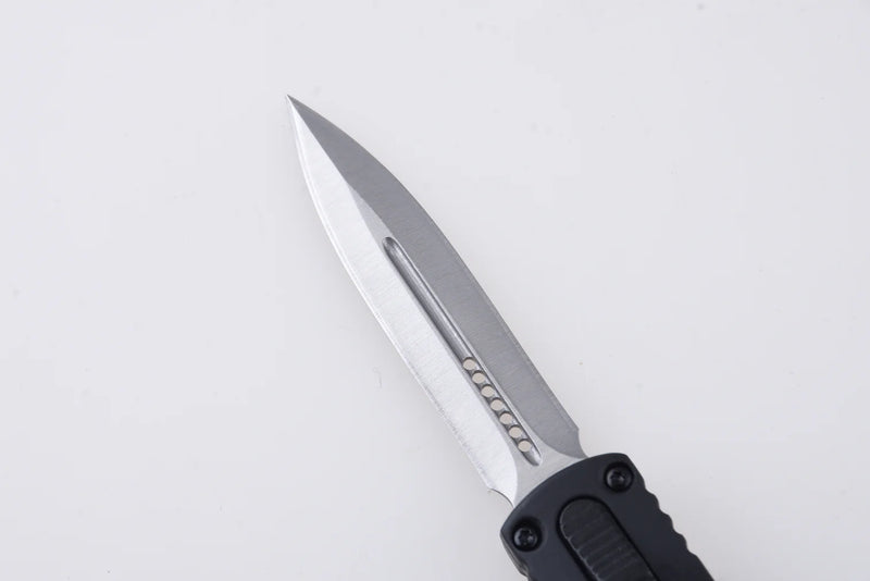With the FrontKick, we've crafted the OTF action to be the perfect balance of comfortable and reliable to operate. The switch is on the face of the handle, instead of the side - which makes it easier to operate repeatedly for daily use. And most importantly, the FrontKick features a beautiful steel dagger blade which is broad and sturdy enough to handle whatever you throw at it.