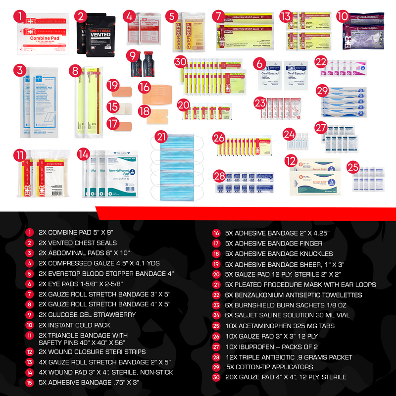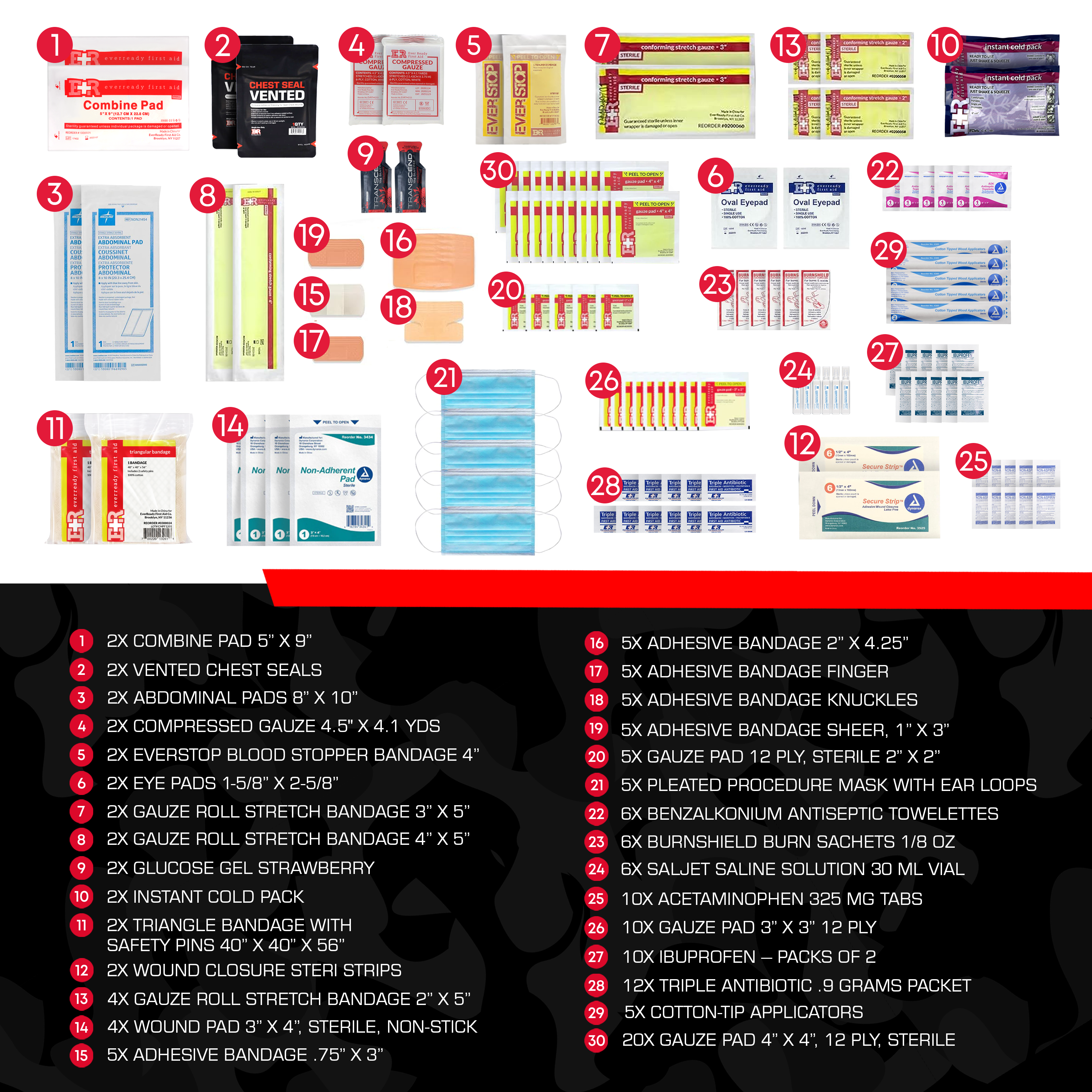 Versatile & Portable: The rucksack design allows for easy transportation, ensuring you have all your trauma supplies on hand wherever you go.