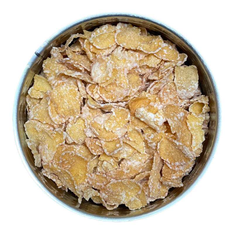 Sweetened Flakes of Corn Cereal. A good part of a nutritious breakfast! Terrific taste of frosted corn! Rich in Folic Acid! A naturally cholesterol free cereal, that is fat free and contains 0 grams trans fat! Frosted Flakes contains the goodness of 9 essential vitamins plus Iron. A wholesome snack or meal for any time of the day.
